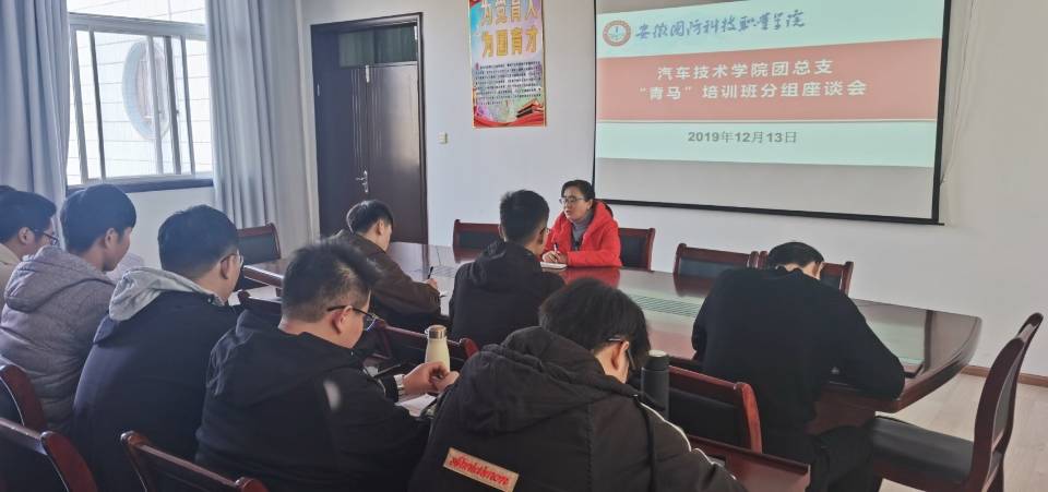 本网讯(汽车技术学院 戴柳)根据《关于开展2019年“青马”学校第十一期大学生骨干培训班暨2019团校培训班的通知》文件精神,汽车技术学院团总支于2019年12月13日中午12点20分在知行楼416会议室召开了“青马”培训班分组座谈会。会议由戴柳老师主持,汽车技术学院全体“青马”培训学员参加。