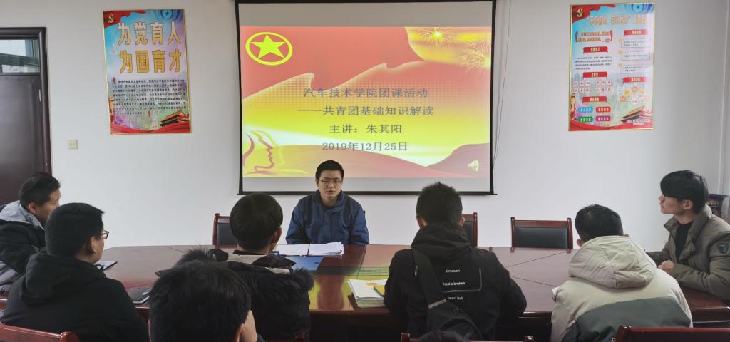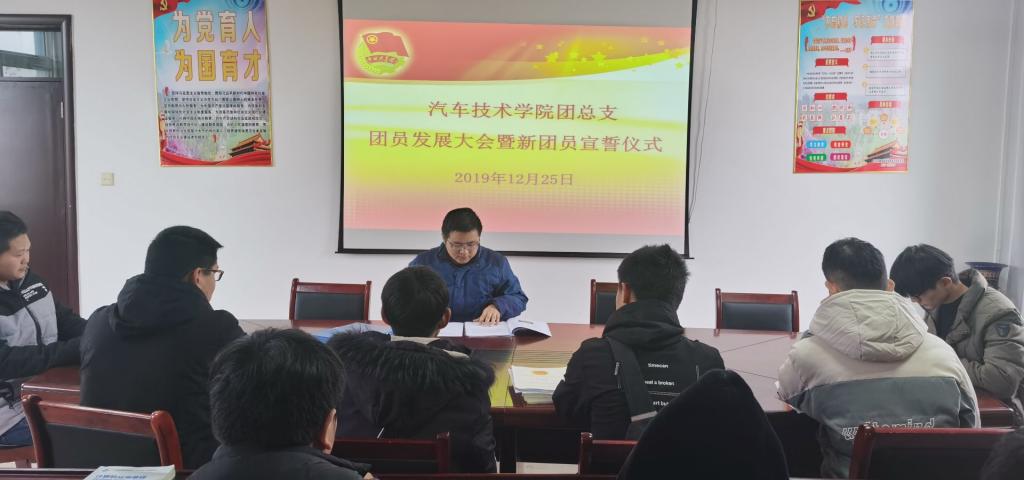 本网讯(汽车技术学院 戴柳)为充分贯彻落实《高校共青团改革实施方案》和学校从严治团工作的要求,12月25日中午11:30,汽车技术学院团总支在知行楼416会议室举行2019年新团员入团宣誓和主题团课活动,仪式由汽车技术学院辅导员朱其阳主持,团总支学生干部及2019年度新发展的13名团员参加本次活动。