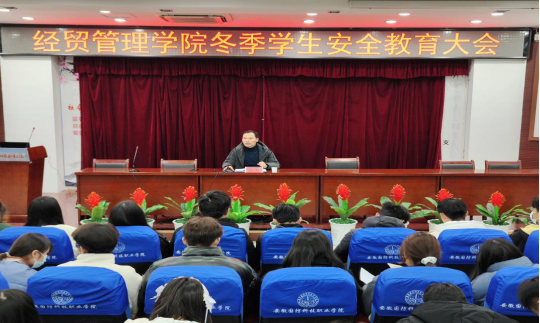 本网讯 12月8日,经贸管理学院在图书馆报告厅召开冬季学生安全教育大会,大会由党总支副书记刘峰主讲。19、20级学生干部与学生会全体成员参加会议。