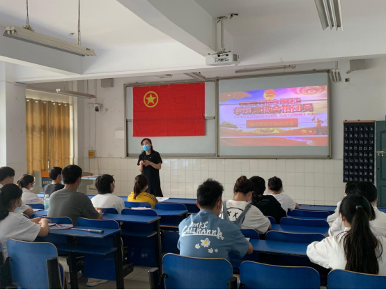 本网讯 2021年6月1日,城市建设学院在二号教学楼105教室举办“我是团员我光荣”2021年新团员发展大会暨新团员宣誓仪式,新老团员互动传递团员精神。参加活动的有8名新团员、院属各班团支部书记和部分优秀团员代表,会议由学院团总支书记张凤老师主持。