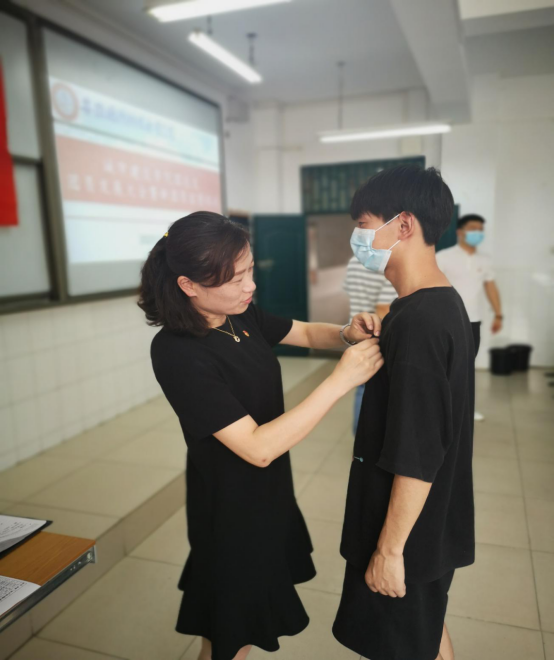 会上,先由张凤宣布发展新团员名单,随后由老团员为新团员佩戴团徽,并在优秀团员代表郑玉龙同学带领下进行入团宣誓,齐唱团歌。
