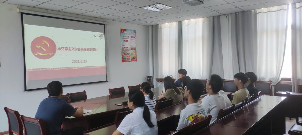 本网讯 为了实现学会新老骨干顺利交接,保障社团健康可持续发展,根据《关于做好2021年度团学组织换届工作的通知》校团〔2021〕15号文件精神,2021年6月23日中午12:00,马克思主义学会在知行楼416会议室召开学会换届竞职演讲大会。会议由学会指导老师戴柳主持,第四届马克思主义学会骨干成员、竞聘第五届马克思主义学会相关职位的同学参加。