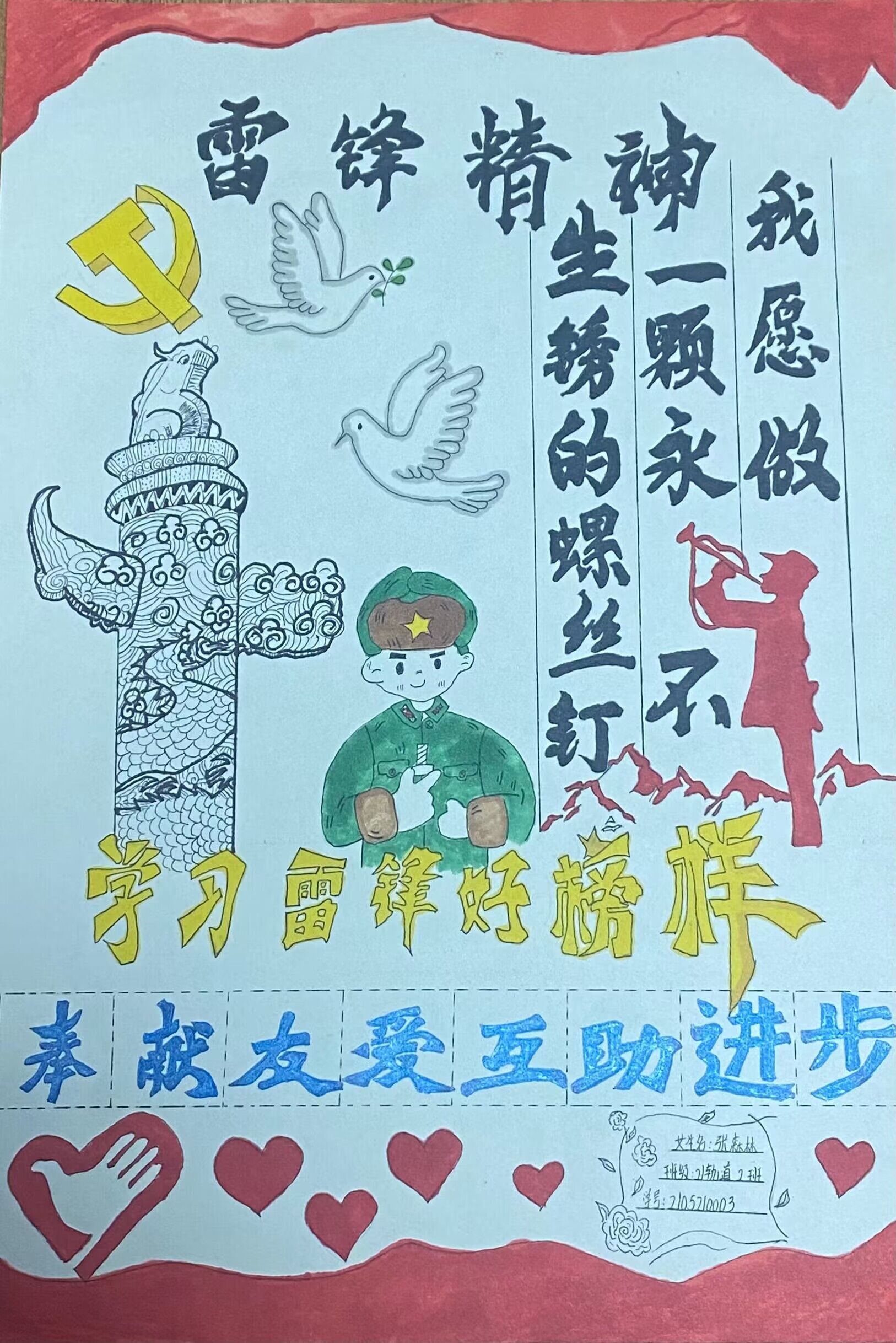 三月春花处处开,雷锋精神代代传。为更好地学习宣传贯彻党的二十大精神和雷锋精神,校社团管理部组织全校青年开展“永远跟党走,志愿耀青春”活动,通过摘抄《雷锋日记》、描画时代楷模、线上线下学习研讨等形式,追寻雷锋足迹,展现青春力量。