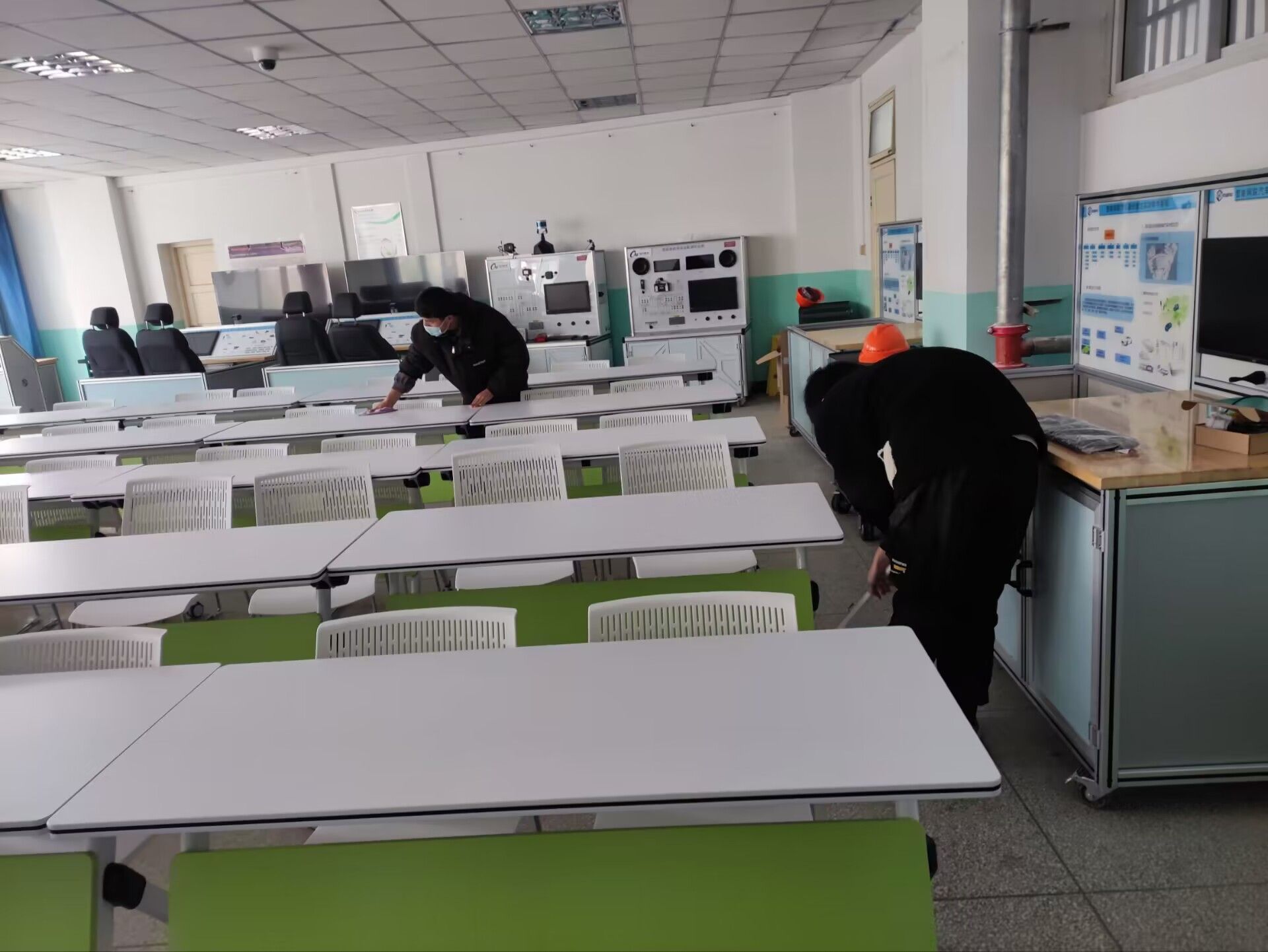 活动中,志愿者们分别拿着卫生工具,在学校体育馆、宿舍楼周边及汽车实训中心打扫环境卫生。大家以劳动为荣,有的用扫帚清扫,有的捡拾生活垃圾、清理纸屑、烟头、树枝,有的提着垃圾桶来回搬运垃圾,用实际行动践行雷锋精神。
