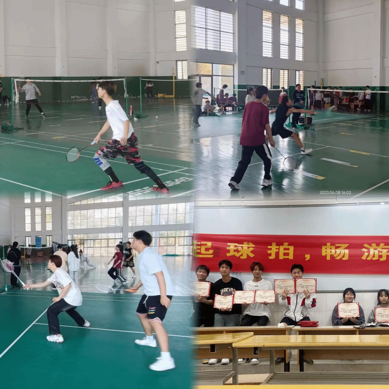本次比赛分为女单、男单、女双、师生四项比赛,60余人参加了比赛。赛场上既有完美的高远球,也有果断的扣杀球,更有轻巧的网前球……只见他们反应灵敏、走位灵活,呈现出一幕幕和谐灵动的美丽风景。比赛高潮迭起,师生情谊融入在一声声喝彩里,每一次挥拍都是友谊的延续,选手们在努力竞技的同时,也尽情享受着比赛的乐趣。