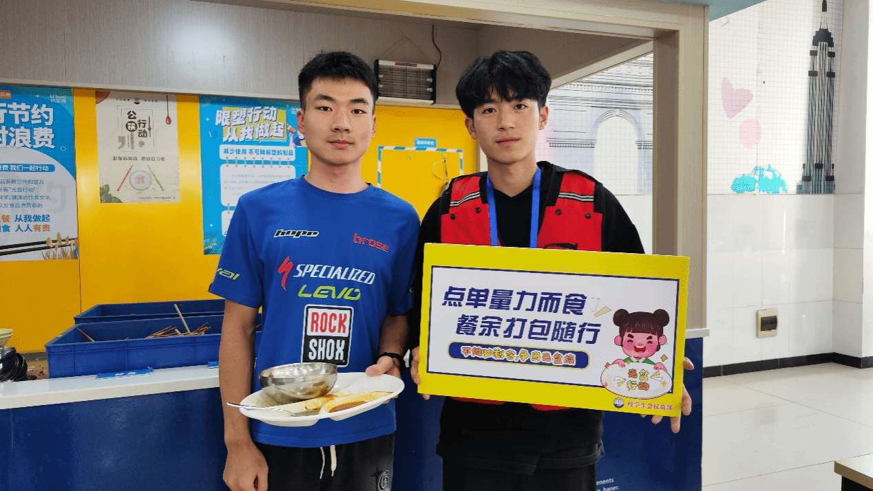 午餐期间,志愿者在食堂内,深入到同学们就餐“一线”希望采用劝导的方法,提醒同学们不要浪费,努力做到不剩菜、不剩饭。志愿者举着“拒绝舌尖上的浪费,从我做起!”和“点单量力而食,餐余打包随行”的倡议文字,倡导同学们反对浪费,崇尚节约。在食堂外,同学们有序排队,在“光盘行动手牵手,勤俭节约心连心”的活动横幅上签上自己的名字,坚决表明自己践行“我光盘,我光荣”的承诺。