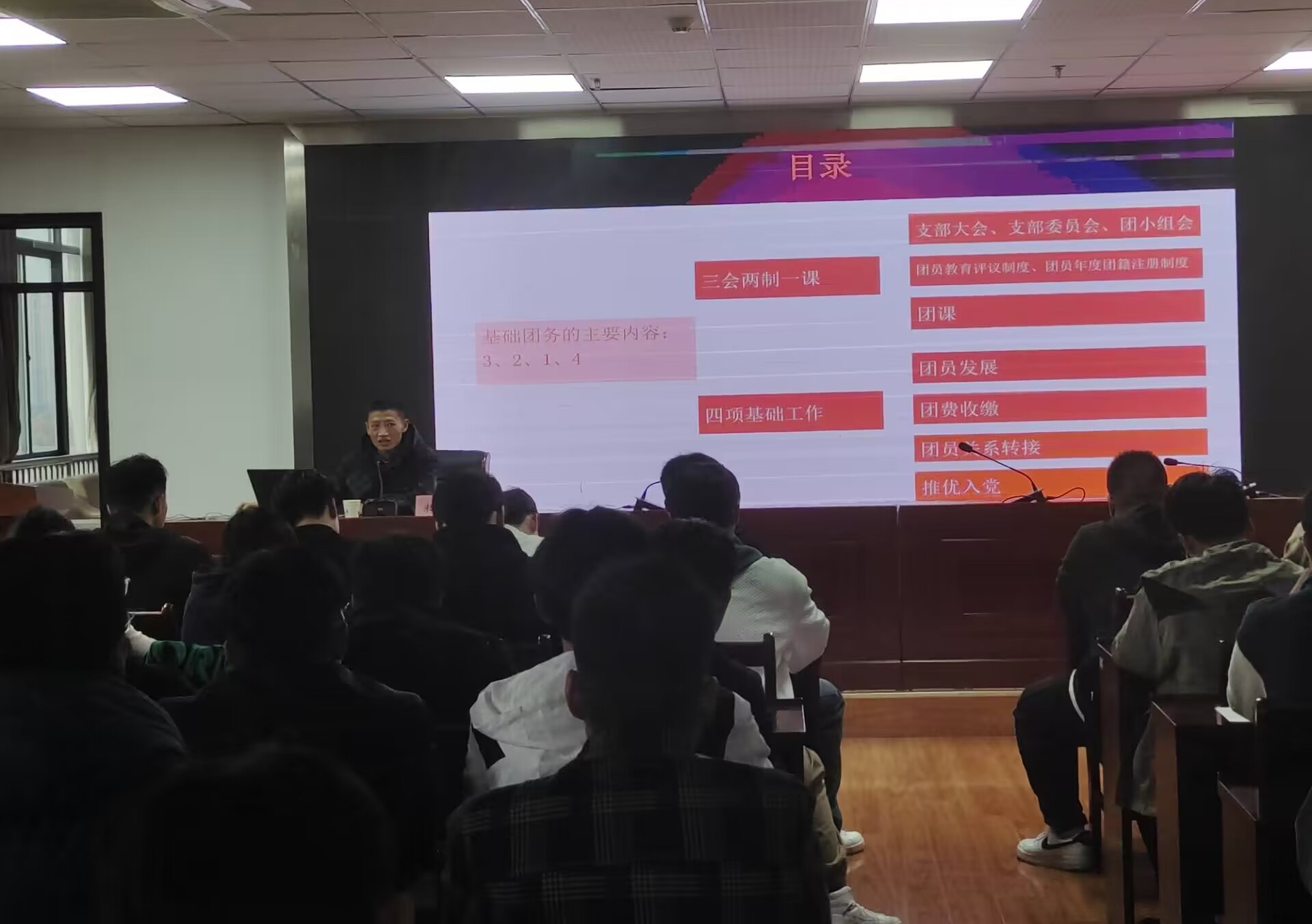 校团委干事朱俊杰就三会两制一课的相关要求,团员发展、团费收缴、团员关系转接、推优入党等四项基本工作进行了细致的讲解。