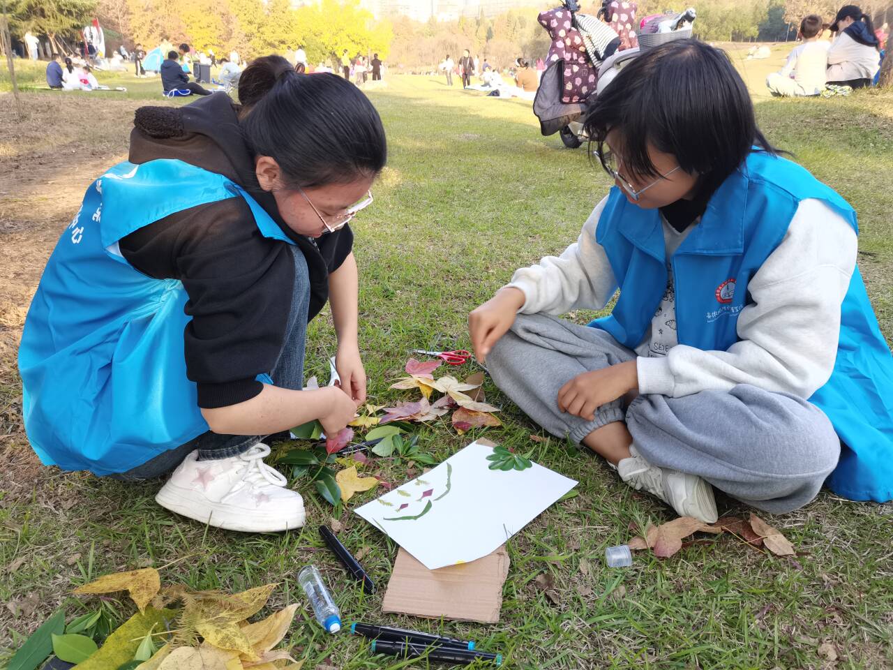 劳动结束后,活动进入了充满奇思妙想的创意拼贴环节。同学们充分发挥想象力,将不同形状、颜色的叶片进行构图、粘贴。一幅幅独具匠心、充满秋日气息的拼贴画在同学们的巧手中诞生,平凡的自然之物被赋予了全新的艺术生命。