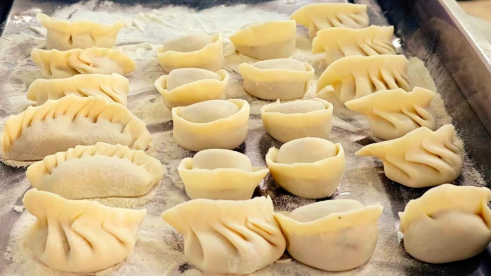 在活动正式开始时,食堂工作人员早早来到现场,为同学们示范包饺子的技巧,同学们都耐心细致地听讲。同学们纷纷围上前学习,有的手法娴熟,很快就包出圆润饱满的饺子;有的则是初次尝试,包出的饺子形态各异,同学们一边动手,一边互相展示自己的“作品”,食堂里充满了热闹又温馨的气息。大家分工协作,原本陌生的同学也在合作中渐渐熟悉,校园里的凝聚力在指尖的忙碌中悄然凝聚。