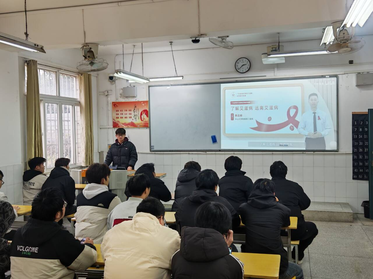 本次活动围绕艾滋病传播途径、科学预防方式以及认知误区等核心内容开展视频科普与知识普及,科普视频播放结束后组织了防艾知识问答,同学们积极参与互动,主动咨询探讨相关问题,现场氛围热烈。通过本次活动,帮助同学们系统地掌握了防艾相关知识,理清了认知误区,有效提升了自我保护能力与健康责任意识,树立了正视艾滋、关爱他人的正确观念。