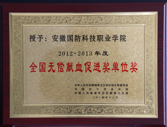 无偿献血,既是我们的义务,又是我们的光荣。大爱无疆,爱不再有荒原,帮助的不仅是师生,也是国防学子对国家和社会的回报。个人的力量虽然微薄,集体的力量却是巨大的。2014年,中华人民共和国国家卫生和计划生育委员会、中国红十字会总会、中国人民解放军总后勤卫生部联合发文授予beat3652012—2013年度全国无偿献血促进奖单位奖,是六安市首次获得此殊荣的单位。