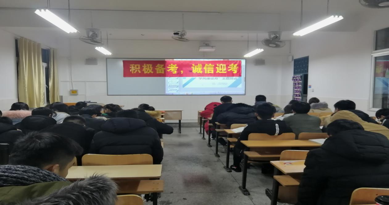 本网讯 期末考试在即,为进一步加强考风考纪,营造良好的学习氛围和公平竞争环境,帮助广大同学树立诚信考试意识,1月3日晚,经贸管理学院17级物流管理1班在2教402室召开了“积极备考 诚信迎考”的学风建设主题班会,班主任吴英老师、全体同学参会,班会由学习委员姬晴主持。