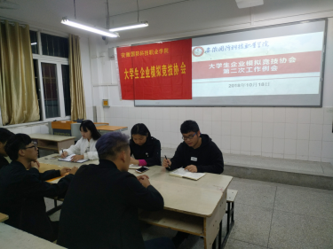 本网讯 2018年10月18日晚,大学生企业模拟竞技协会在二教102召开了本学期第二次全体例会,由指导老师付玉梅主持。