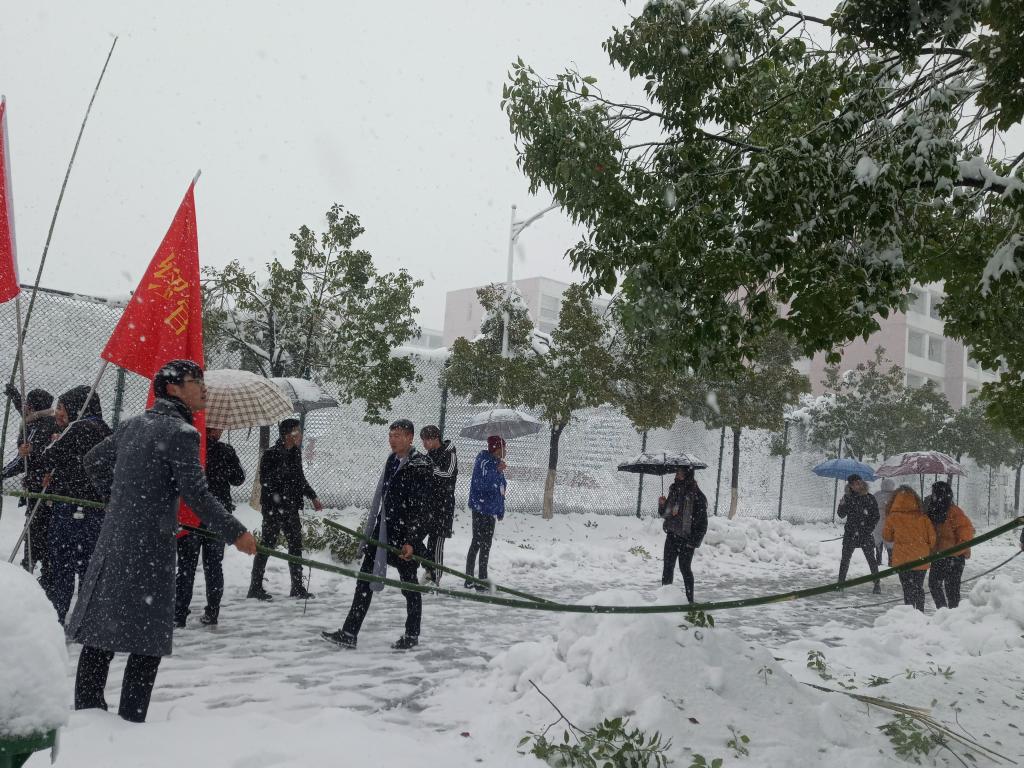 从学校的公共区域到宿舍楼,从教学楼门前屋后到景观树上的积雪,我院学生干部积极主动参加此次活动,虽然天气十分寒冷,大家手、脸都冻的通红,但大家仍卖力的除着雪。除雪活动于中午1点开始下午4点左右结束,同学们发扬了吃苦耐劳,顽强拼搏的精神,大家团结协作,顶着寒风经过几个小时的奋战将景观树上的雪清理干净。气温虽低,但大家的劳动热情和团结力量让这个寒冬变得格外温暖。