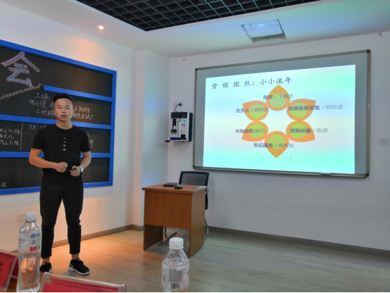 在PPT汇报中,各团队向在座评委和同学们展示了参赛以来的营销策略、销售过程中的点滴努力及取得的成绩,让我们看到了团结协作的智慧。随后娃哈哈六安分公司查同柱及杨学分分别进行点评。通过商品生动化陈列、销售实战、PPT汇报总成绩,最终决出一等奖1名,二等奖2名,三等奖2名。由16、17市场营销1班组成的“小小流年”团队获得第一名,16连锁经营1班、16工程造价2班组成的“钱途无量”团队获得第二名。(指导老师:李文君)