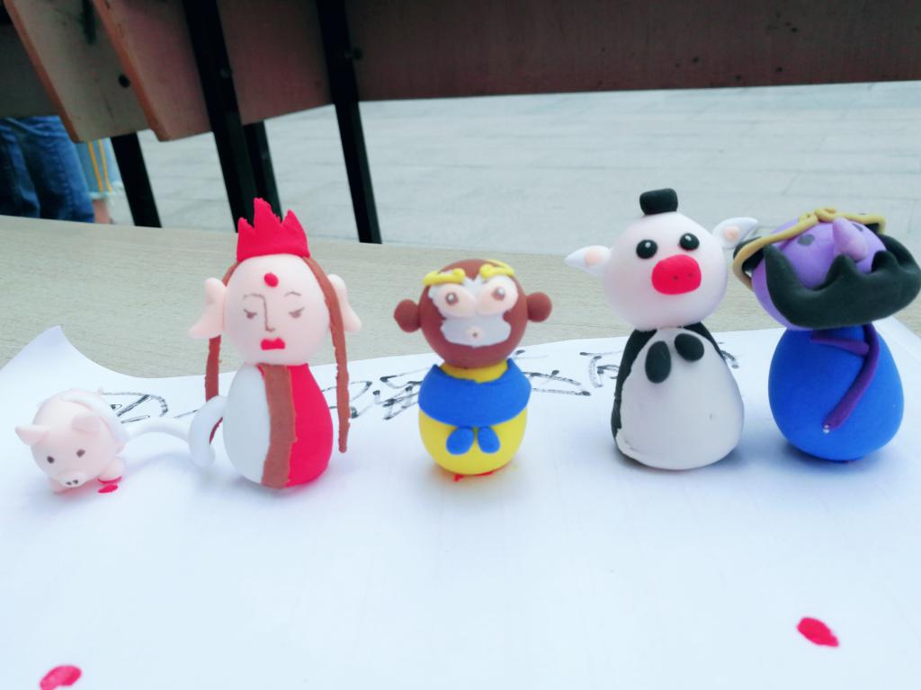 活动中,同学们通力合作,参与热情高涨,有的以西游记为主题,塑造出其中经典人物的形象,惟妙惟肖,憨态可掬;有的以快餐为主题,捏出一盘汉堡包、可乐、薯条,注重颜色搭配,做工细腻;有的以动植物为主题,五颜六色的小蘑菇、欣欣向荣的向日葵、张牙舞爪的八爪鱼等,生动形象,可爱有趣。经过两个多小时的精心制作,参赛同学共完成50组黏土DIY作品,现场观众忍不住为一个个精致的作品点赞。