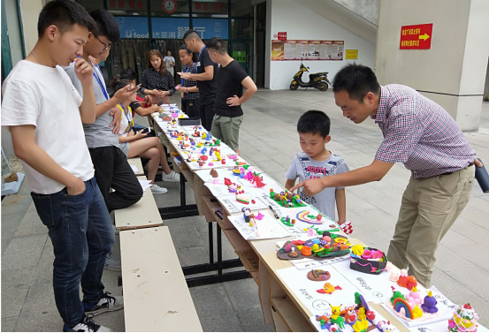 本网讯 为激发同学们的创造力和想象力,提升同学们沟通协作能力,2018年5月30日,经贸管理学院学生会女生部在校食堂门口举办了“黏土DIY”活动。团委副书记张红军老师出席此次活动。