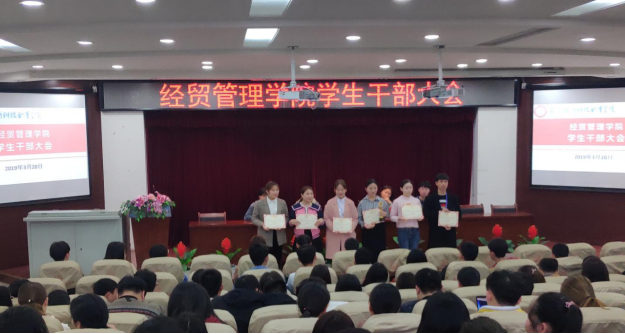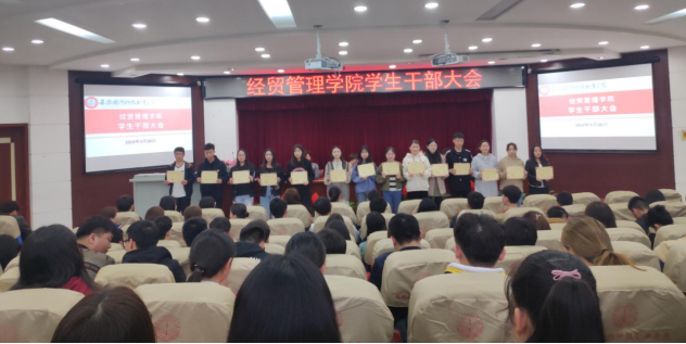 本网讯 为推动学生管理工作的有序开展,发挥学生干部在学院建设中的积极作用,经贸管理学院于2019年3月20日下午17:00在图书馆报告厅召开经贸管理学院学生干部表彰大会。经贸管理学院党总支副书记刘峰、团总支书记付玉梅及学生代表共250人参加了会议,会议由许凤麟老师主持。