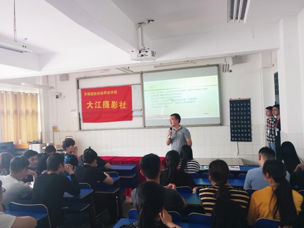 本网讯 为了进一步提高同学们的摄影水平,帮助学生学会实用的新闻拍摄技巧,掌握校园摄影知识,5月29日下午三点,由大江摄影社承办的“校园新闻摄影”讲座在二教105教室顺利举办。本次讲座特邀学校宣传部副部长杨旄袤老师担任主讲,校级学生组织、各学院学生会、各学生社团负责宣传工作的学生代表以及大江摄影社的同学们参与了讲座学习。