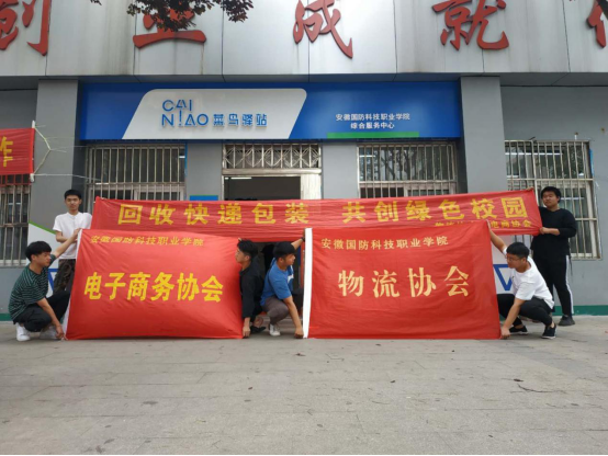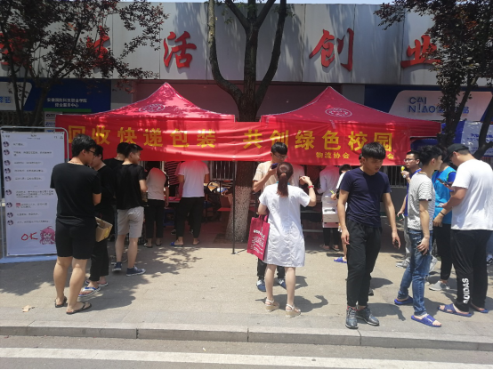 本网讯 随着网络购物的飞速发展,快递业越来越火爆。但是有一个现象不容忽视,那就是快递盒子随处乱扔的现象。这种行为不仅破坏环境整洁,更重要的是浪费大量社会资源。为了营造文明整洁的校园环境,物流协会和电子商务协会6月2号和6月5号联合在校园菜鸟驿站门口举办了“回收快递包装,共创绿色校园”活动。