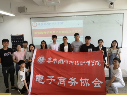 本网讯 2019年6月17日中午,第七届电子商务协会换届交接仪式在2教208教室举行。指导老师吴英,9家兄弟协会负责人,第六届电商协会会长祝祥、副会长艾雨、单金峰、各部门负责人以及新一届电商协会学生干部们出席了本次换届交接仪式。