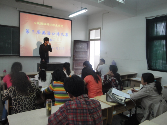 此次比赛受到各系大力支持,各系学生报名踊跃,积极参赛。机械、机电、管理、信息四系共有75名选手同台竞技,各献其能。本次比赛邀请外语教研室的全体老师担任评委,他们本着公平、公正的原则认真仔细的为各位选手打分,经过自我介绍、即兴问答等环节,储燕等20名同学进入决赛。决赛将于5月28日举行。
