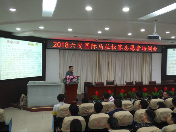 2018六安国际马拉松赛于5月6日在省级体育生态公园六安市河西广场正式开赛。根据六安市政府《2018六安国际马拉松赛筹备方案》部署安排,学校组织300名志愿者开展志愿服务活动。