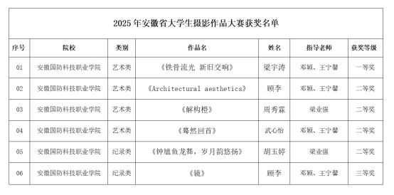 近日,2025年安徽省大学生摄影大赛获奖名单正式公布。在beat365邓颖、王宁馨等老师的悉心指导下,学子们凭借出色的艺术视角和扎实的摄影功底,从众多参赛者中脱颖而出,斩获艺术类一等奖、二等奖及纪录类三等奖等多项荣誉,成绩斐然,充分展现了beat365美育教育的丰硕成果与长足进步。