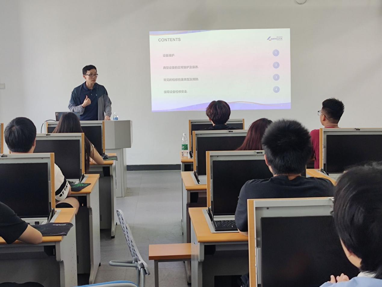 本网讯(电气技术学院 马骙)6月3日下午,杭州朗迅科技股份有限公司(以下简称“杭州朗迅”)应邀来校面向2023级集成电路技术专业学徒制班的学生开展专项培训活动。此次培训特别邀请了公司资深工程师李炫赋部长担任主讲人。李部长结合丰富的集成电路行业设计、管理经验,详细讲解了设备日常维护的重要性、常见检修伤害类型及预防措施,并分享了保障设备检修安全的具体措施。在培训过程中,不仅介绍了机械设备使用的前提和基础—设备的日常维护和保养,还重点强调了基础数据维护、设备维护人员、检修计划制定以及突发事故抢修等方面的内容。通过案例分析和实际操作演示,学生们对设备维护的流程和方法有了更深刻的认识。此外,培训还特别关注了典型设备的日常维护及保养,如探针台、测试机、重力式分选机等。详细介绍了这些设备的日常保养要求、巡检规范以及保养流程,帮助学生们掌握实际操作技能。