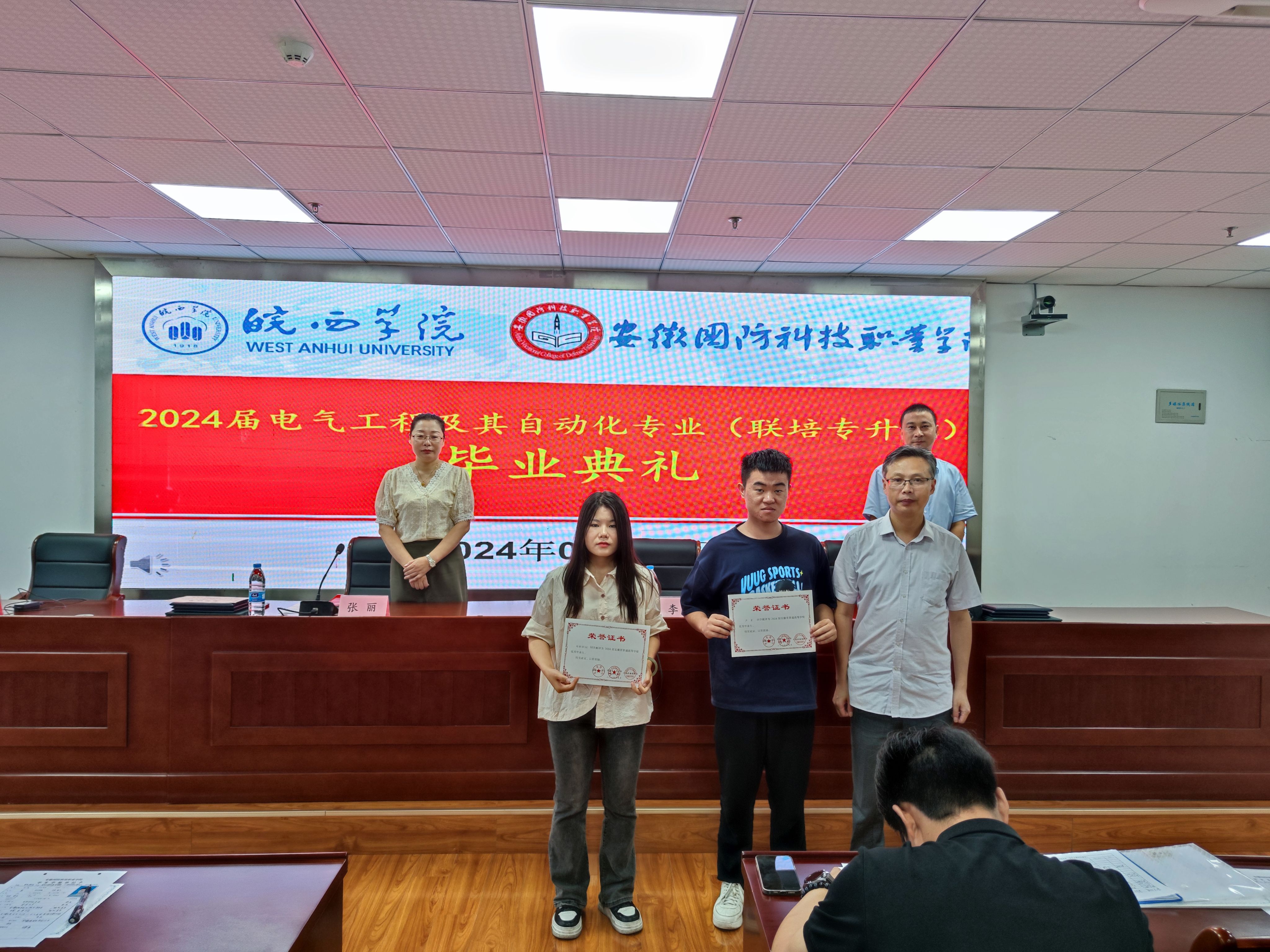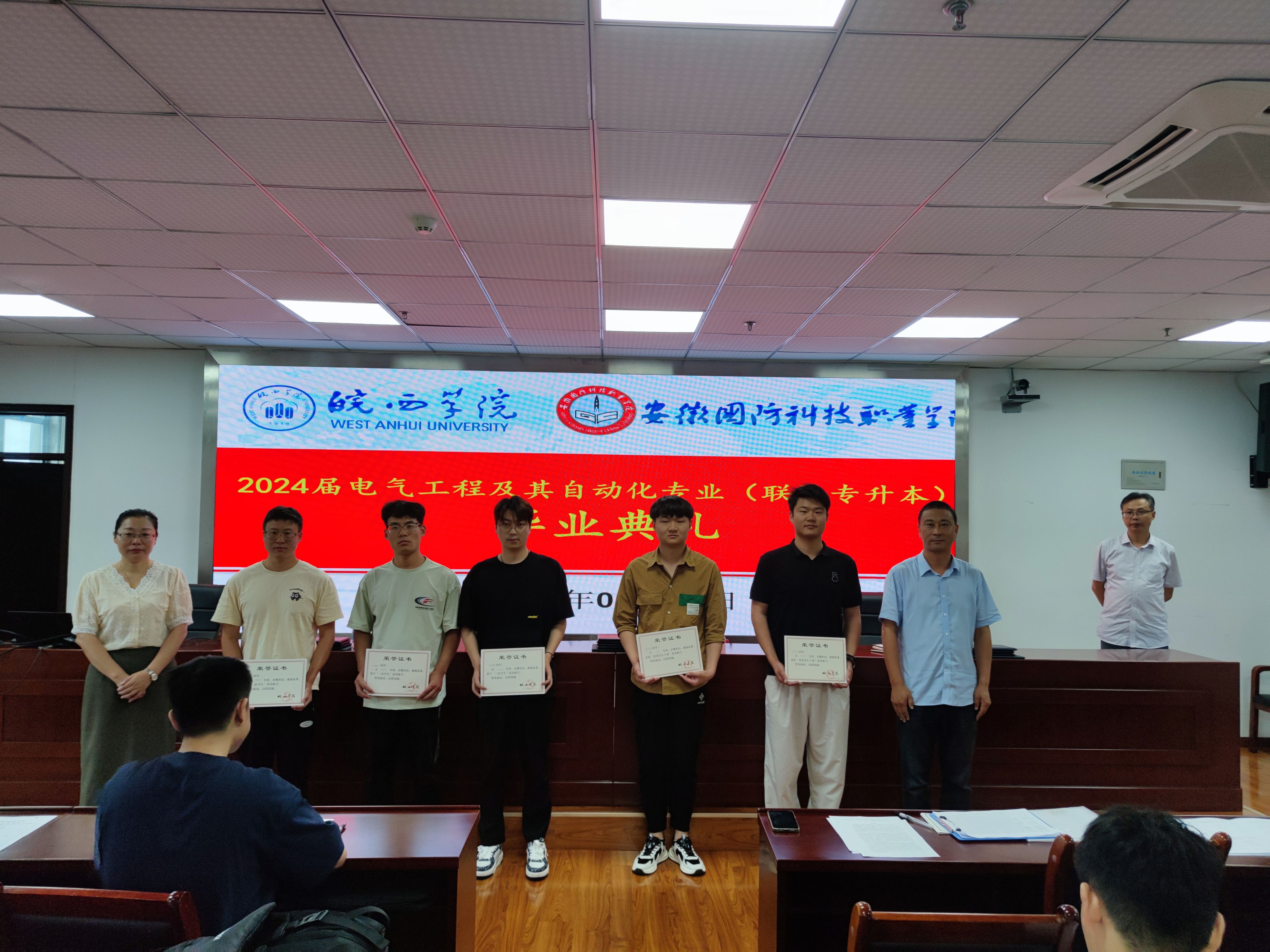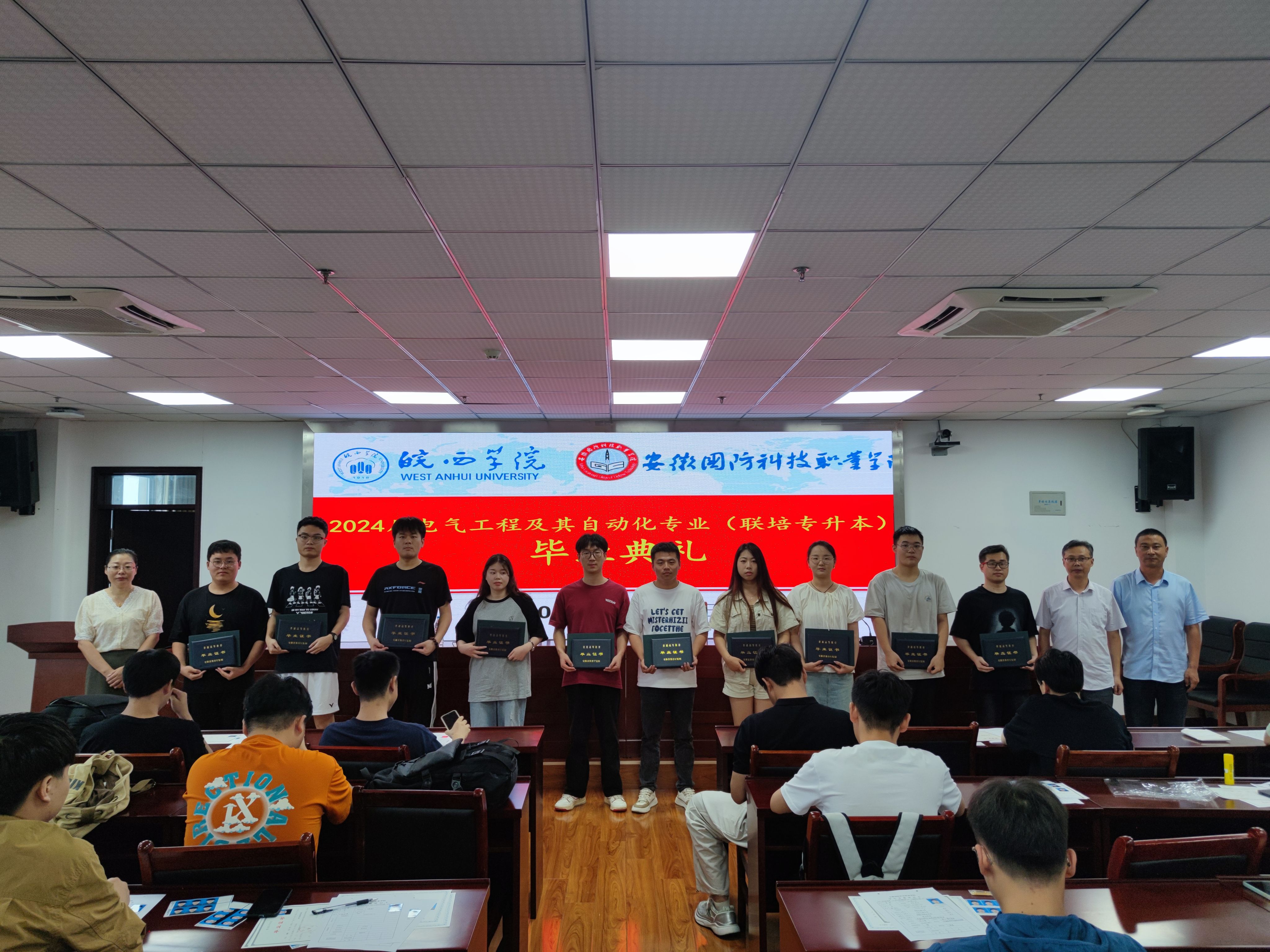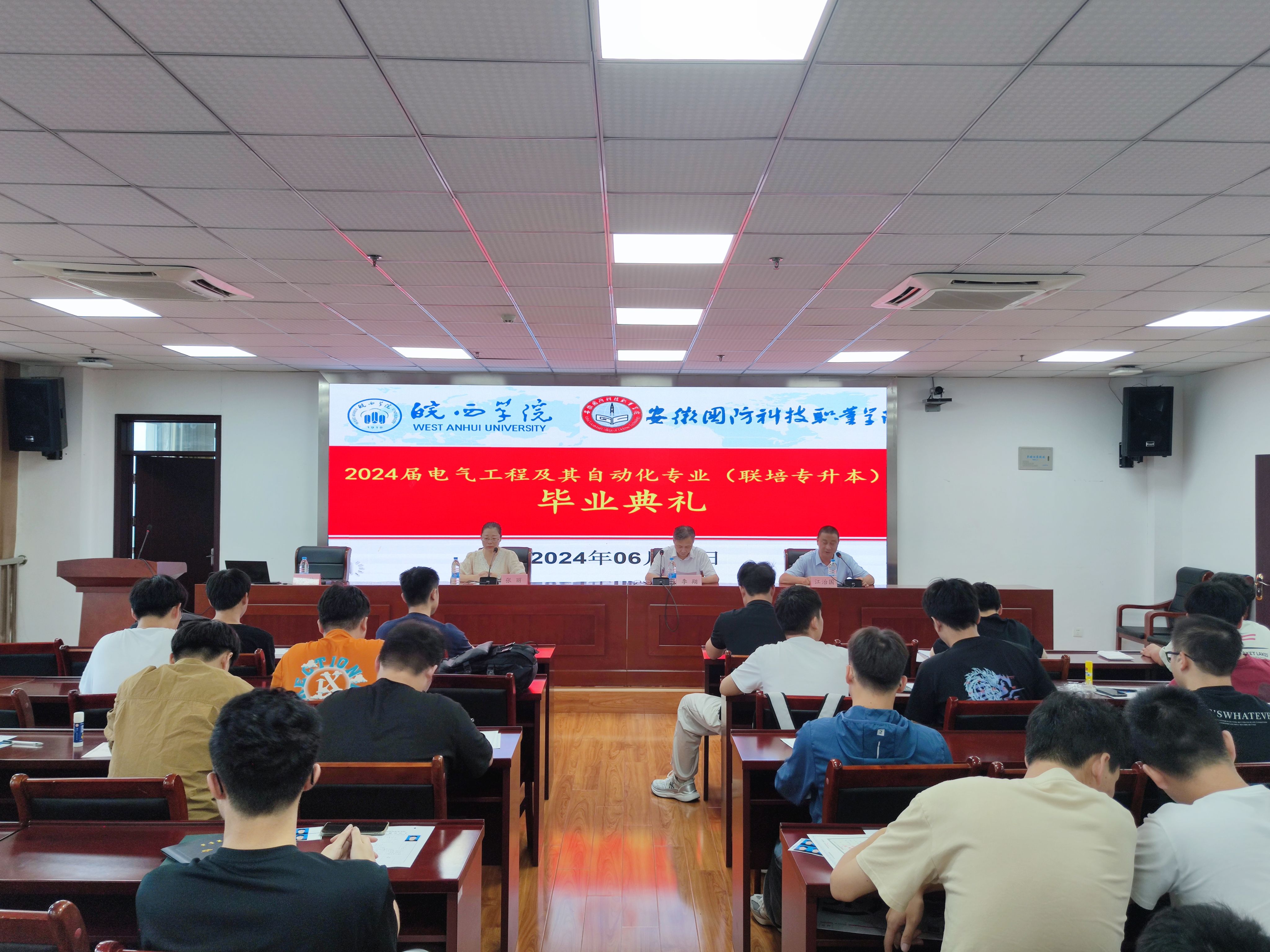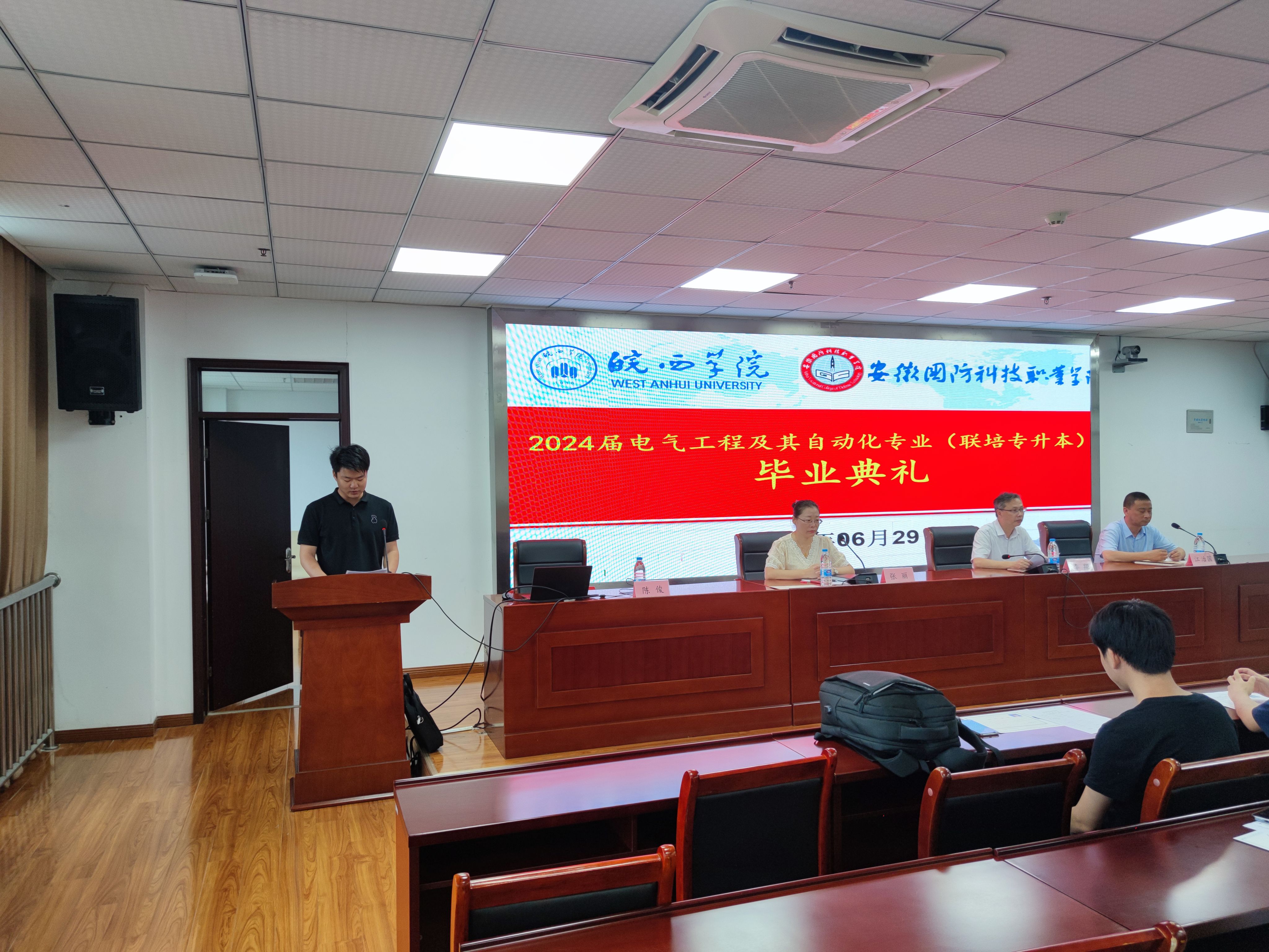 本网讯 2024年6月29日上午,皖西学院与beat365在线唯一官网专升本联合培养电气自动化技术专业 2024 届毕业生毕业典礼在秉心楼12楼会议室隆重举行。电气技术学院领导、教师以及全体 2024 届电气自动化技术专升本毕业生共同见证了这一重要时刻,会议由电气技术学院副院长江治国主持。