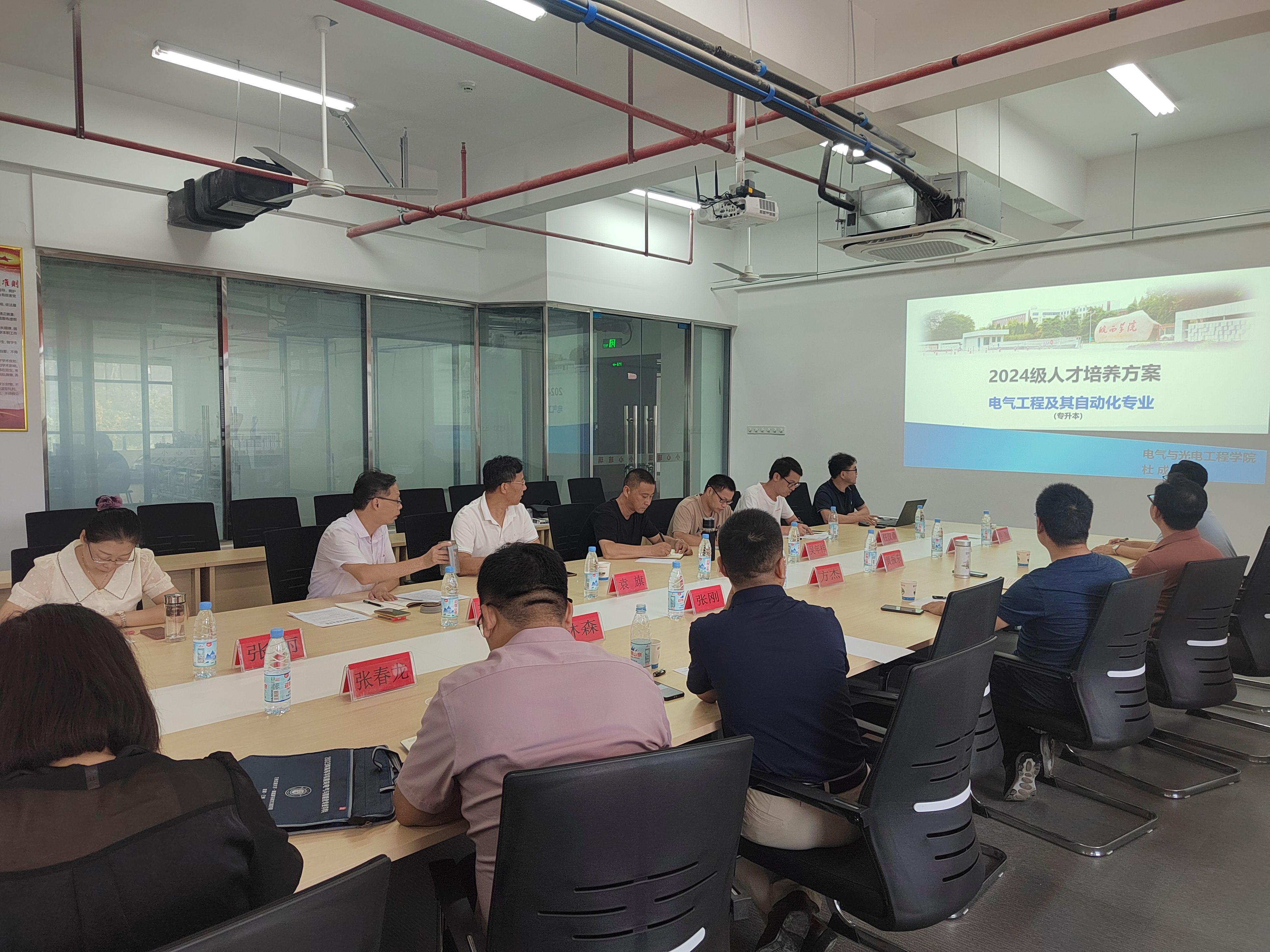 杜成涛汇报了电气工程及其自动化专业(专升本)2024级人才培养方案的修订情况。在讨论环节,各位领导和专家围绕电气工程及其自动化专升本联合培养的课程设置、教学方法、实践教学、学生管理等方面展开了深入的交流和研讨。方杰院长详细介绍了皖西学院在电气工程及其自动化专业的教学成果和创新举措。韩梅副书记就学生思想政治教育和综合素质培养提出了宝贵的建议。张春龙副院长则重点探讨了实践教学环节的优化和完善。