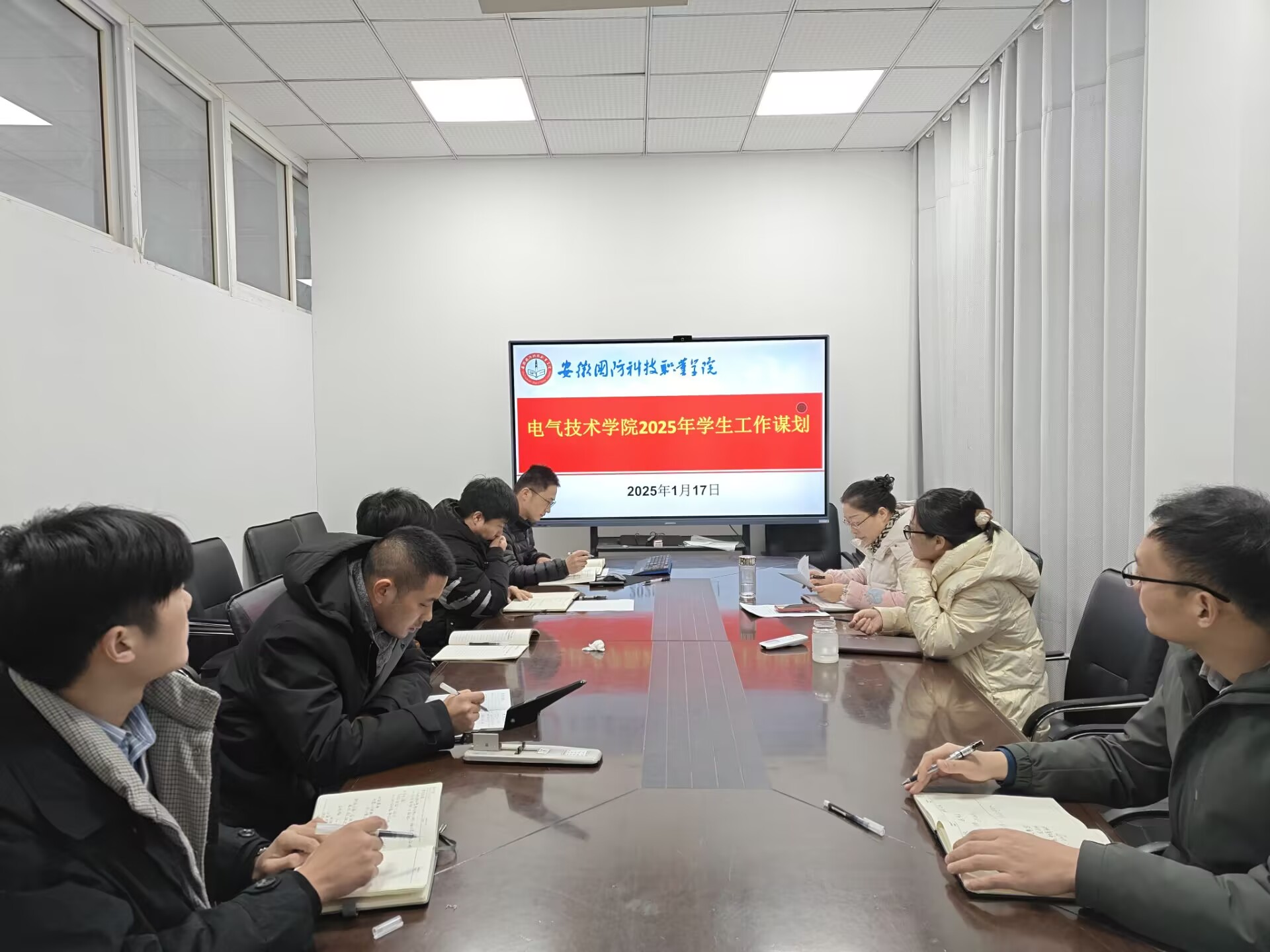 本网讯(电气技术学院 申晓伟)为进一步做好电气技术学院2025年学生工作,1月17日上午,电气技术学院在知行楼102召开学院学生工作务虚会,电气技术学院党总支副书记张丽及全体专职辅导员参加会议。会议围绕学院2024年学生工作完成情况与2025年重点工作任务,参会人员畅所欲言,集思广益,积极理思路、定目标、谋举措。