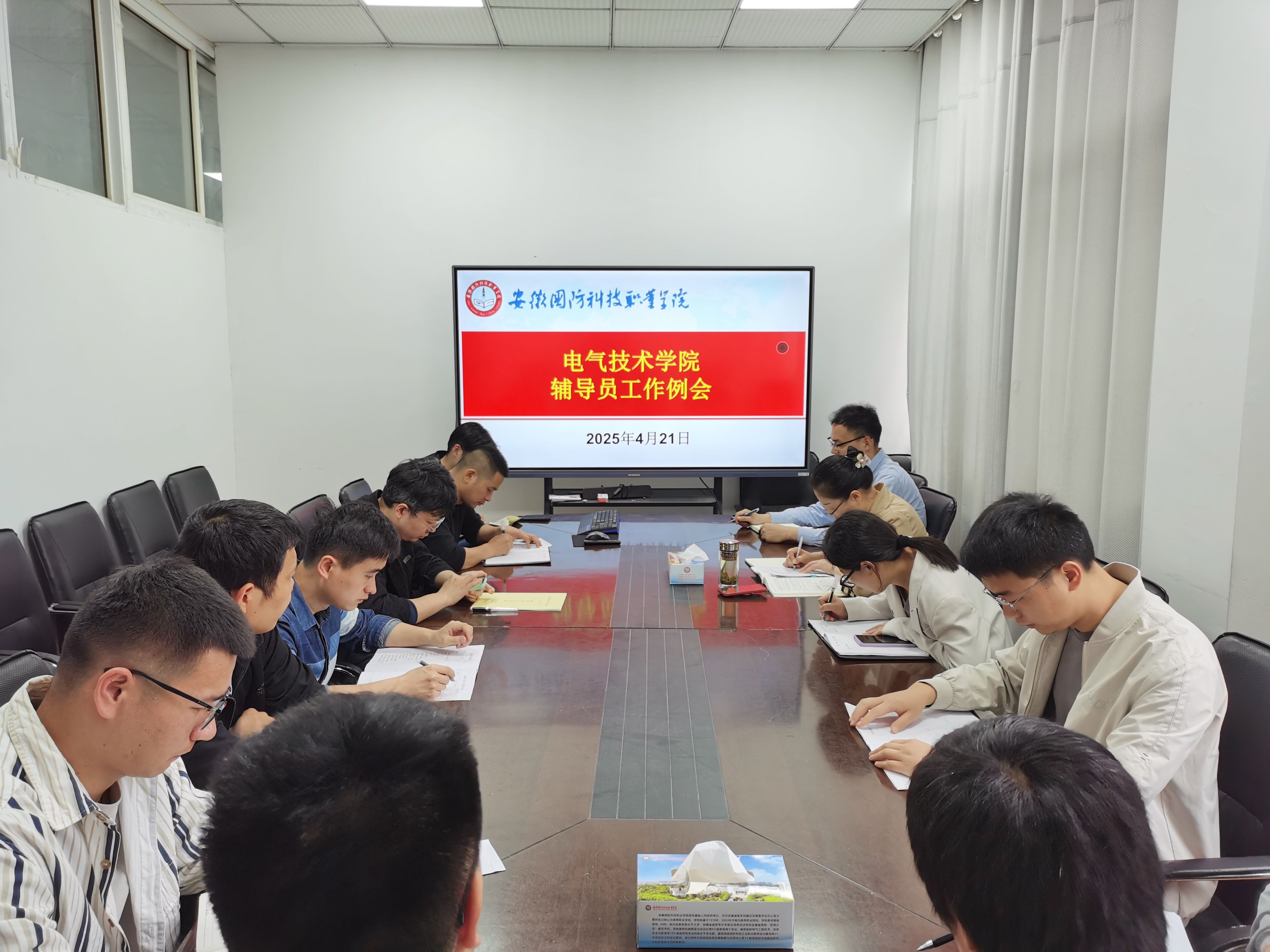 本网讯(电气技术学院 申晓伟)4月21午,电气技术学院召开辅导员工作例会。学院党总支副书记张丽主持会议,全体专兼职辅导员参加会议。
