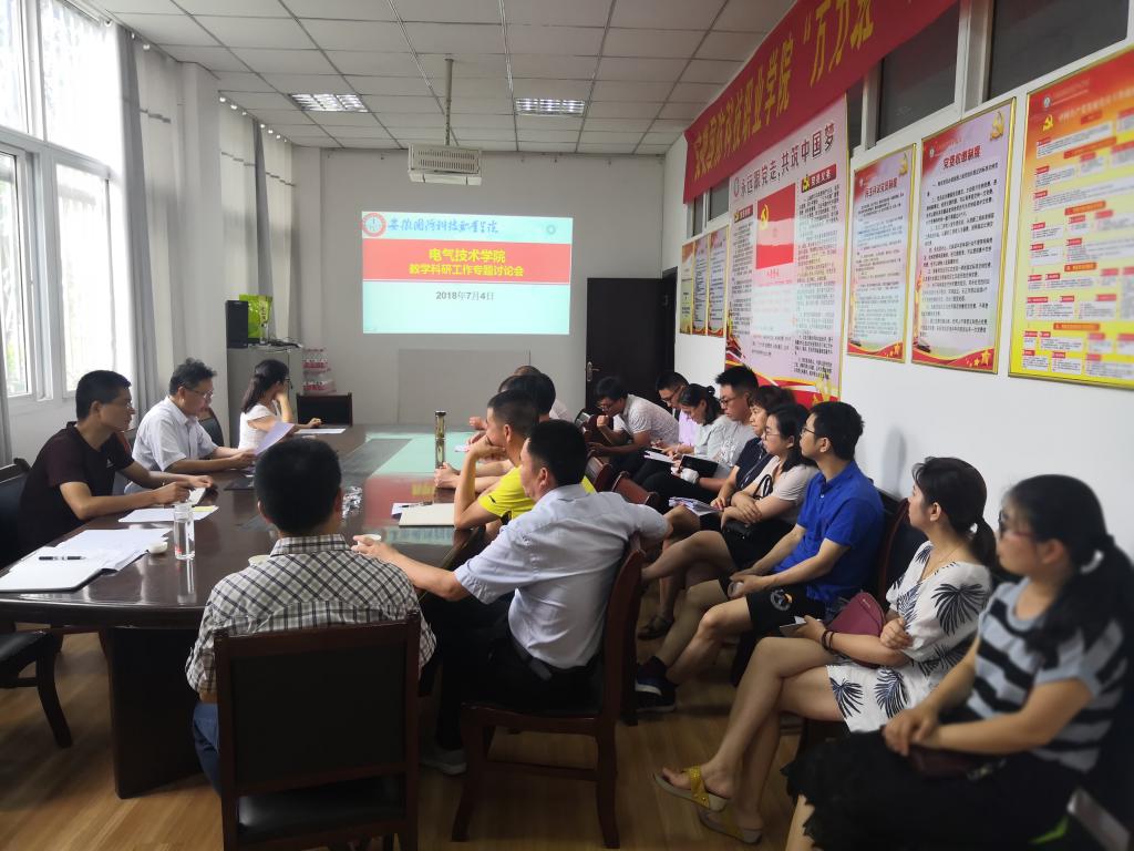 为切实提高学校人才培养质量和社会服务水平,根据《关于开展教学科研工作专题讨论活动的通知》(校办[2018]27号)文件要求,电气技术学院于7月4日下午组织召开了教学科研专题工作研讨会,全体教职工参会,会议由院长李翔主持。