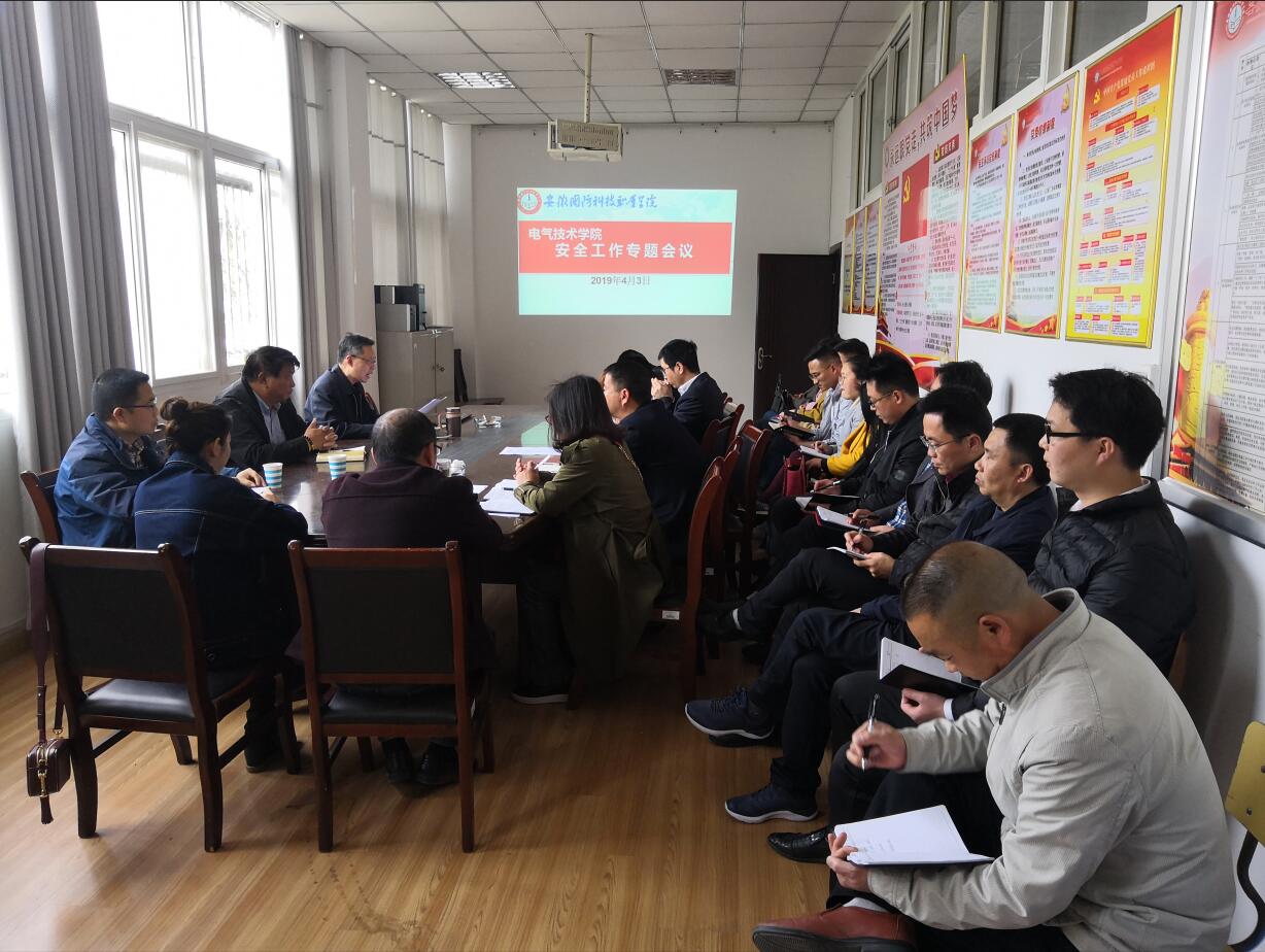 4月3日下午,电气技术学院召开2019年安全工作专题会议,会议由院长李翔主持,党总支书记王希江及全体教职工参加了本次会议。