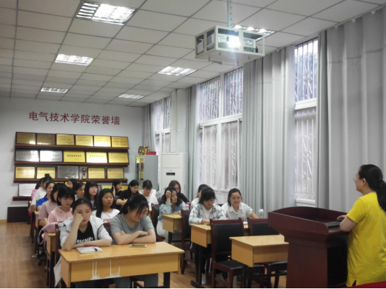 为加强女生管理,促进学生健康成长,5月28日晚上7:00,电气技术学院在行政楼102会议室召开以“遇见更好的自己”为主题的女生心理健康暨安全教育专题会议。会议由学院17级辅导员汤晓莉主讲,大一、大二全体女生出席。