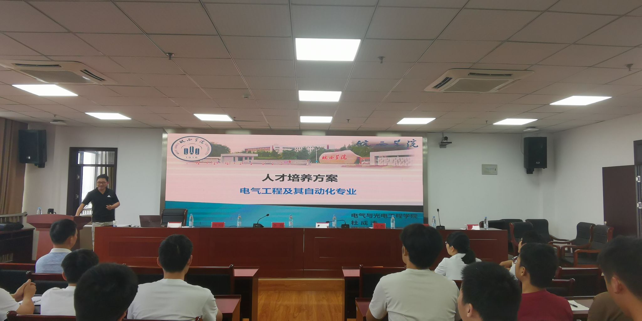 皖西学院电气工程及其自动化专业带头人杜成涛副教授对《皖西学院2023级“专升本“电气工程及其自动化专业人才培养方案》进行了解读,从人才培养方案制定的基本原则、目标与定位、培养方案内容等方面重点进行了讲解,通过专业介绍,同学们对所学专业有了更深入的的认识和了解,对自己未来专业课程学习和职业生涯规划也有了全面、全新的展望。至此,2023级专升本联合培养电气工程及其自动化专业开学典礼暨入学教育大会圆满结束。