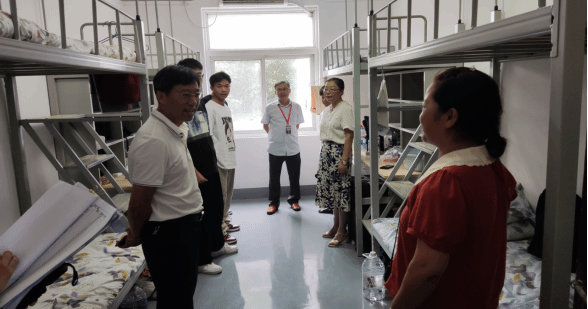 袁旗细心询问新同学对生活环境和餐饮环境的满意程度,并介绍了学校关于宿舍管理和消防安全的规章制度,嘱咐新同学遵守校规校纪,注意用水用电安全和宿舍卫生,鼓励新同学尽快适应大学学习和生活环境,尽早融入集体。袁旗还与学生家长亲切交谈,回应家长关心关切的问题,请家长放心。新同学及家长表示对学校的生活环境非常满意,对开启大学生活新篇章充满了期待,同时也对学校暖心贴心的迎新工作表达感谢,希望学校越办越好。