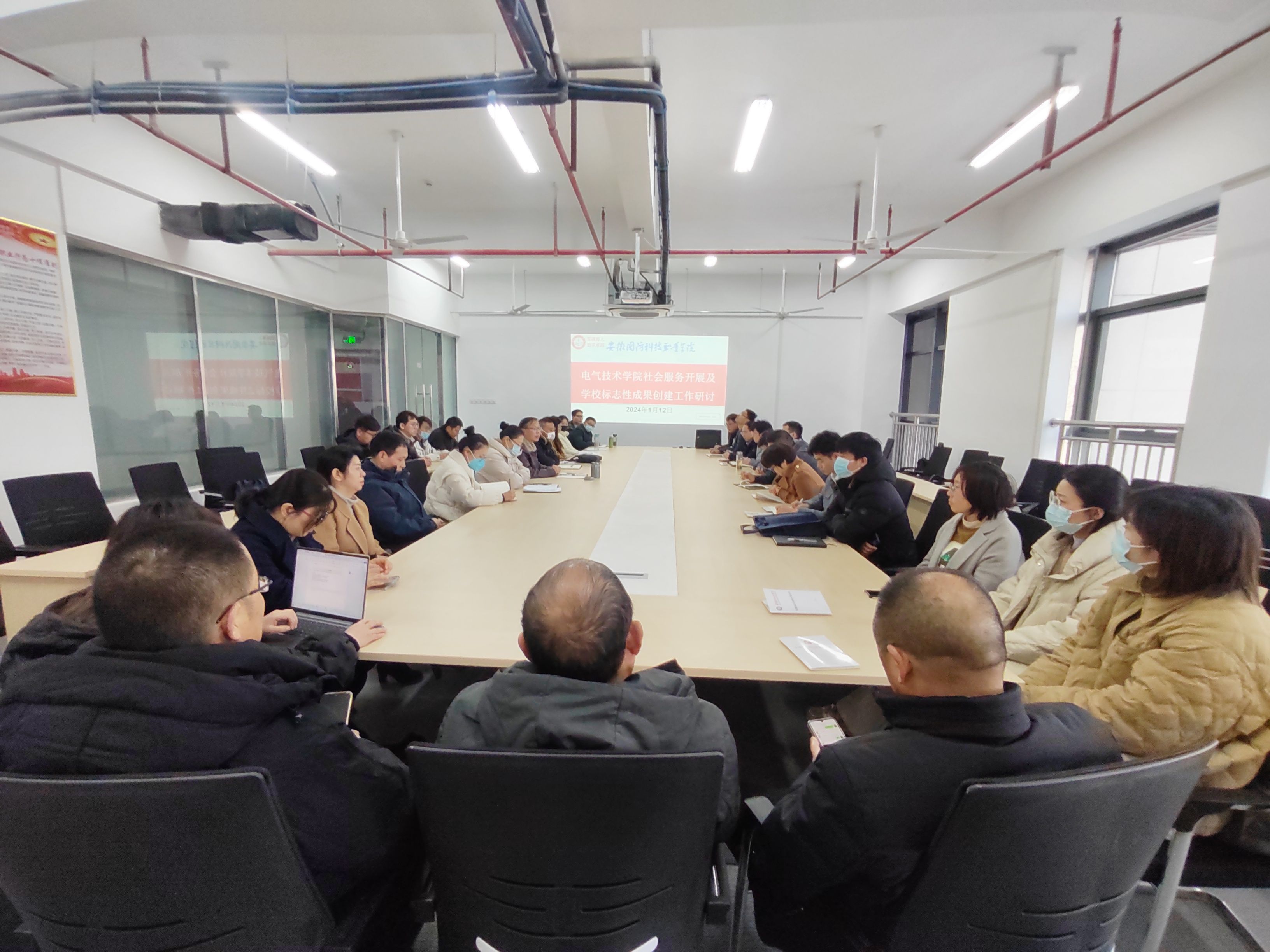 为切实提高学院社会服务能力,推进标志性成果的建设,1月12日下午,电气技术学院在产教融合中心3楼会议室,召开了2024年社会服务开展及学校标志性成果创建研讨会。会议由电气技术学院院长李翔主持,学院全体教职工参加会议。