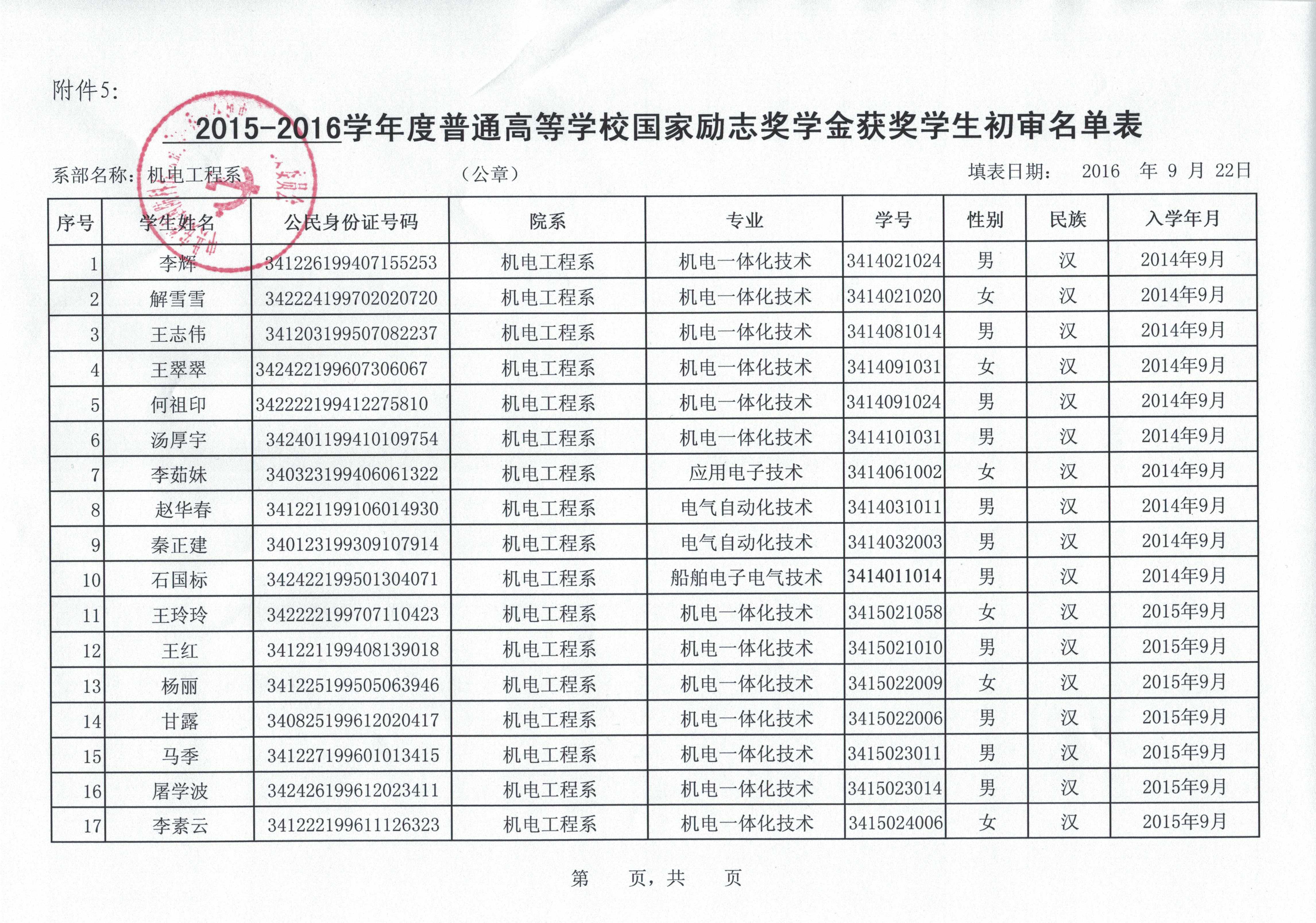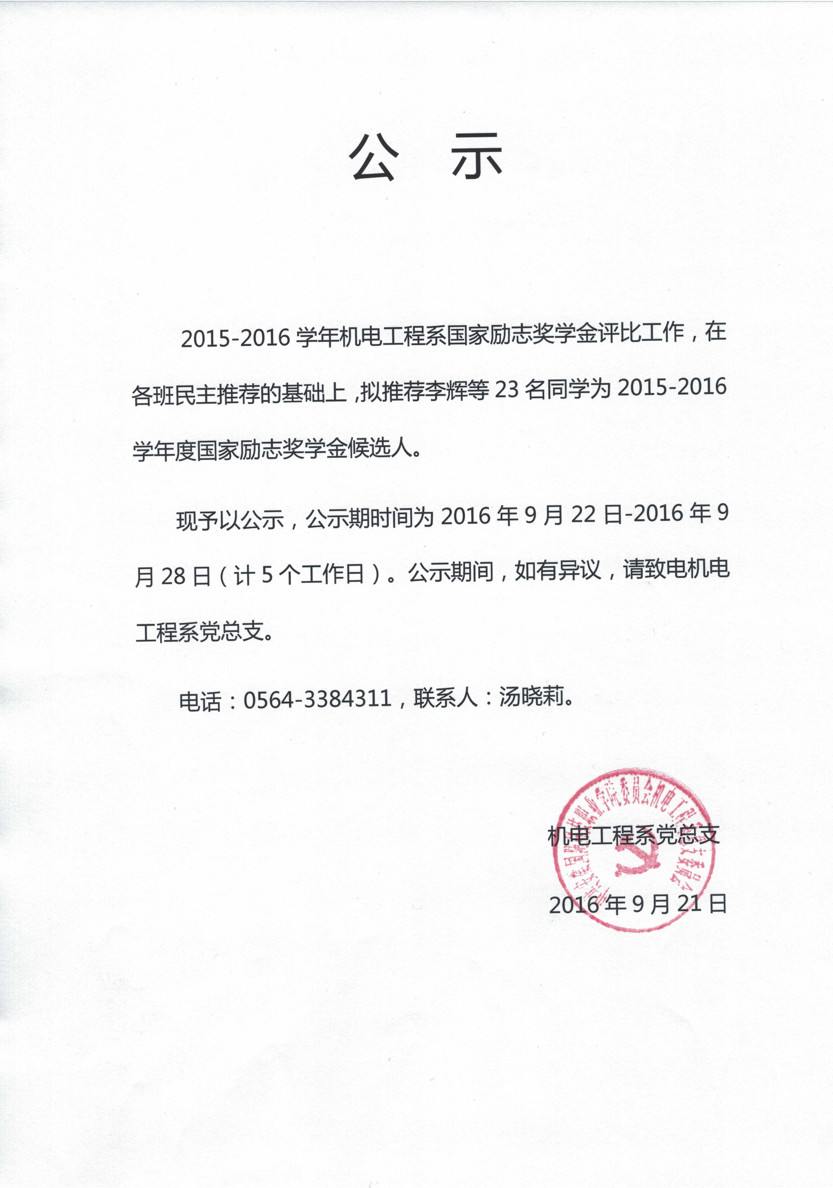 上一条:关于机电工程系2015-2016学年度国家奖学金评比结果公示 下一条:关于2016年度机电工程系申报职称评审人员系部评审推荐结果公示