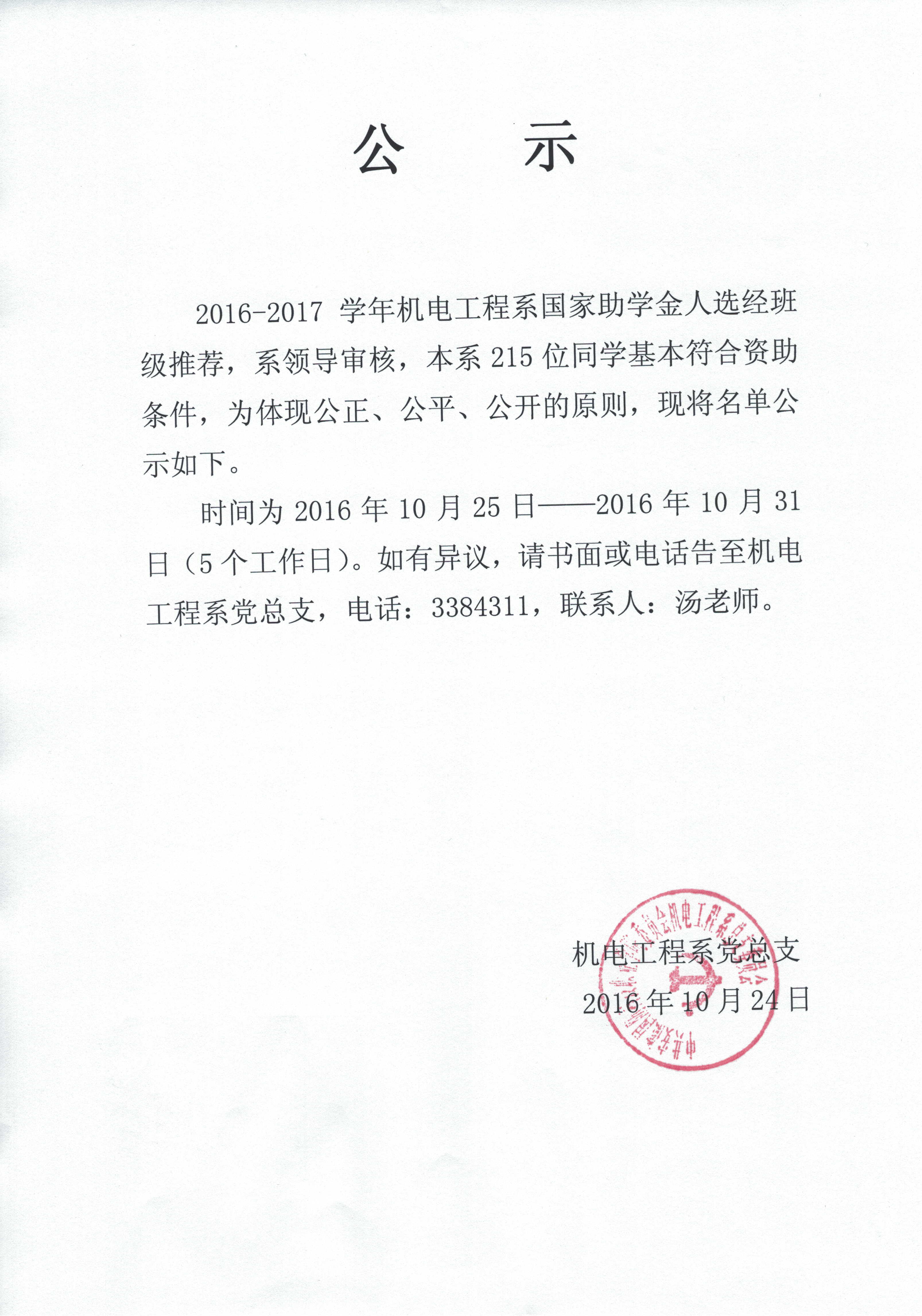 上一条:机电工程系关于开展2016年秋冬季“百日”安全专项行动的通知 下一条:关于召开2016/2017学年第一学期机电工程系师生座谈会的通知