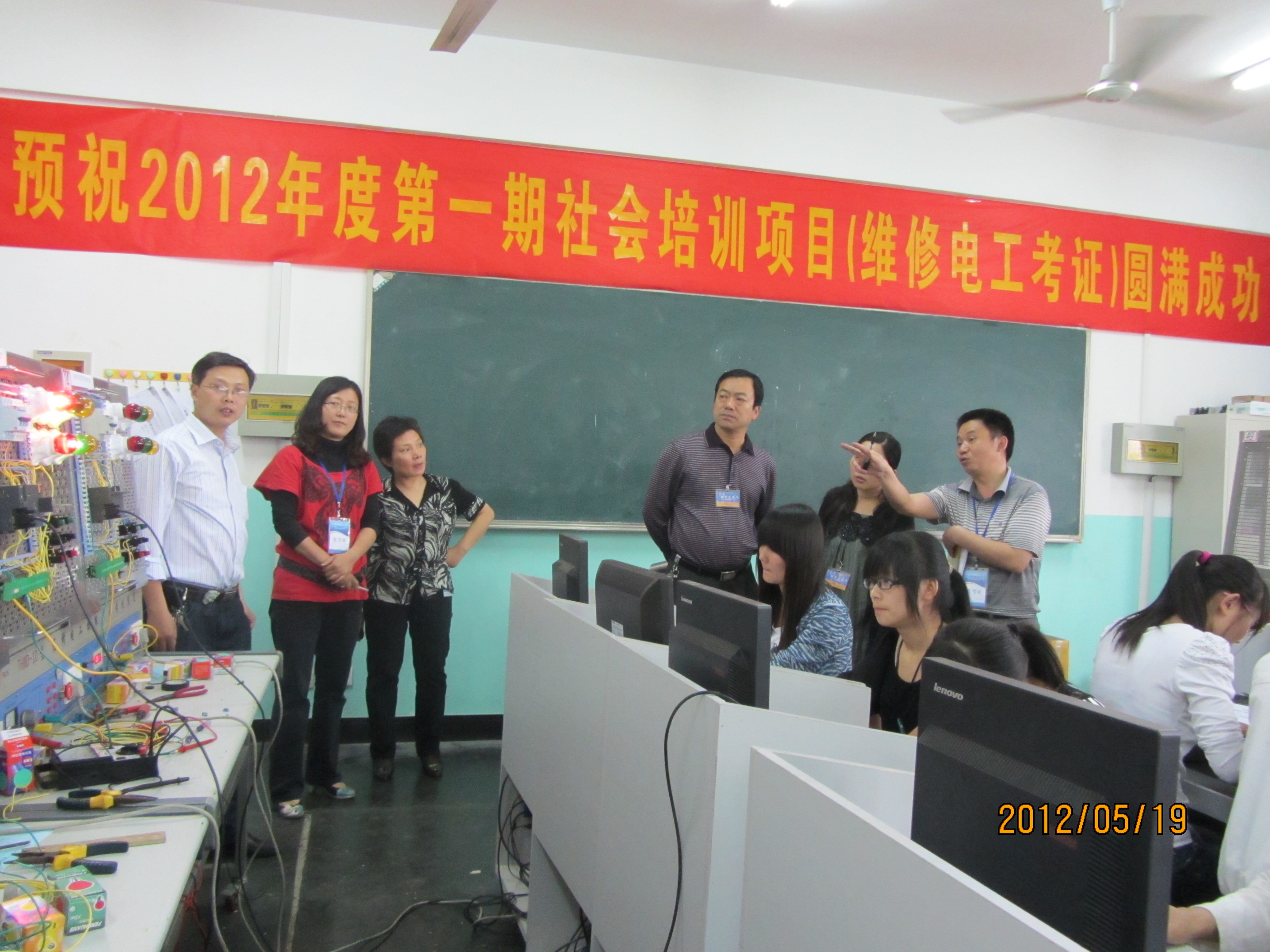 按照培训考证计划安排,在经过前期各模块的紧张培训后,机电107、108班于5月19日进行了维修电工(高级工)考证工作。本次鉴定工作是该项目在我院首次按全省统考标准安排,在六安市职业技能鉴定中心的全程指导、参与和监控下,我系考评教师牺牲了大量休息时间进行了考场的准备布置、监考和评判等工作,从而保证了本次考证工作的顺利开展。学生们在考证过程中沉着冷静、稳定发挥,取得了较好成绩。