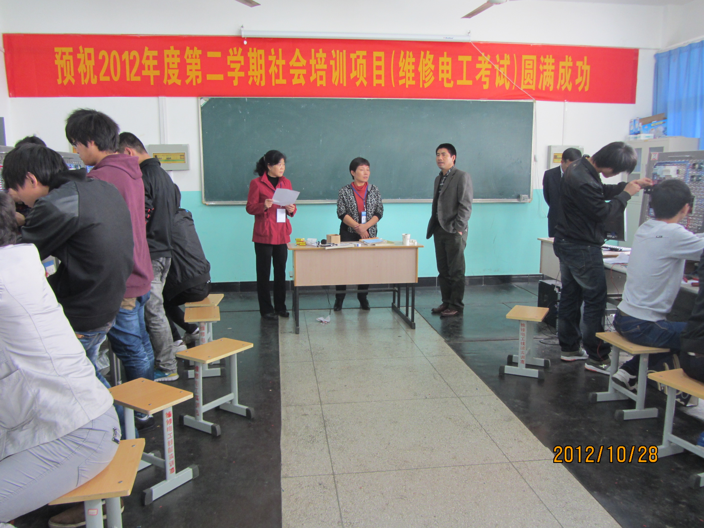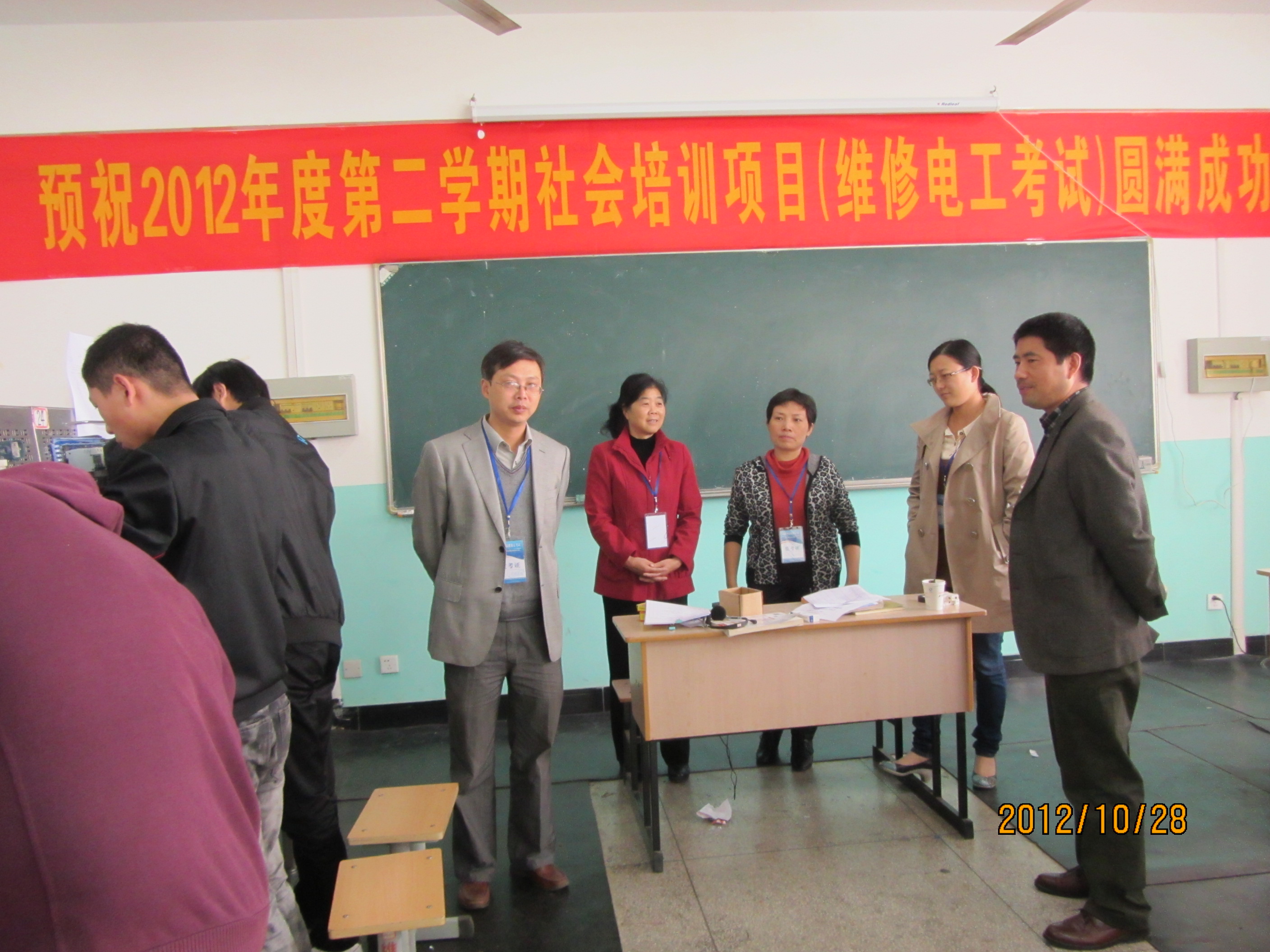 在经过前期各模块的紧张培训后,电工电子与自动化实训中心2012年度第二期社会培训项目(维修电工考证培训)于10月28日进行了维修电工的职业技能鉴定(考证)工作。本次鉴定工作在六安市职业技能鉴定中心的全程指导、组织和监控下开展;系实训中心在学院职业技能鉴定站的指导下考前精心准备,确保考证工作顺利实施;考评员认真负责、严格规范、任劳任怨,参考学员沉着冷静、认真操作、稳定发挥,鉴定工作获得了巡考领导的高度评价。