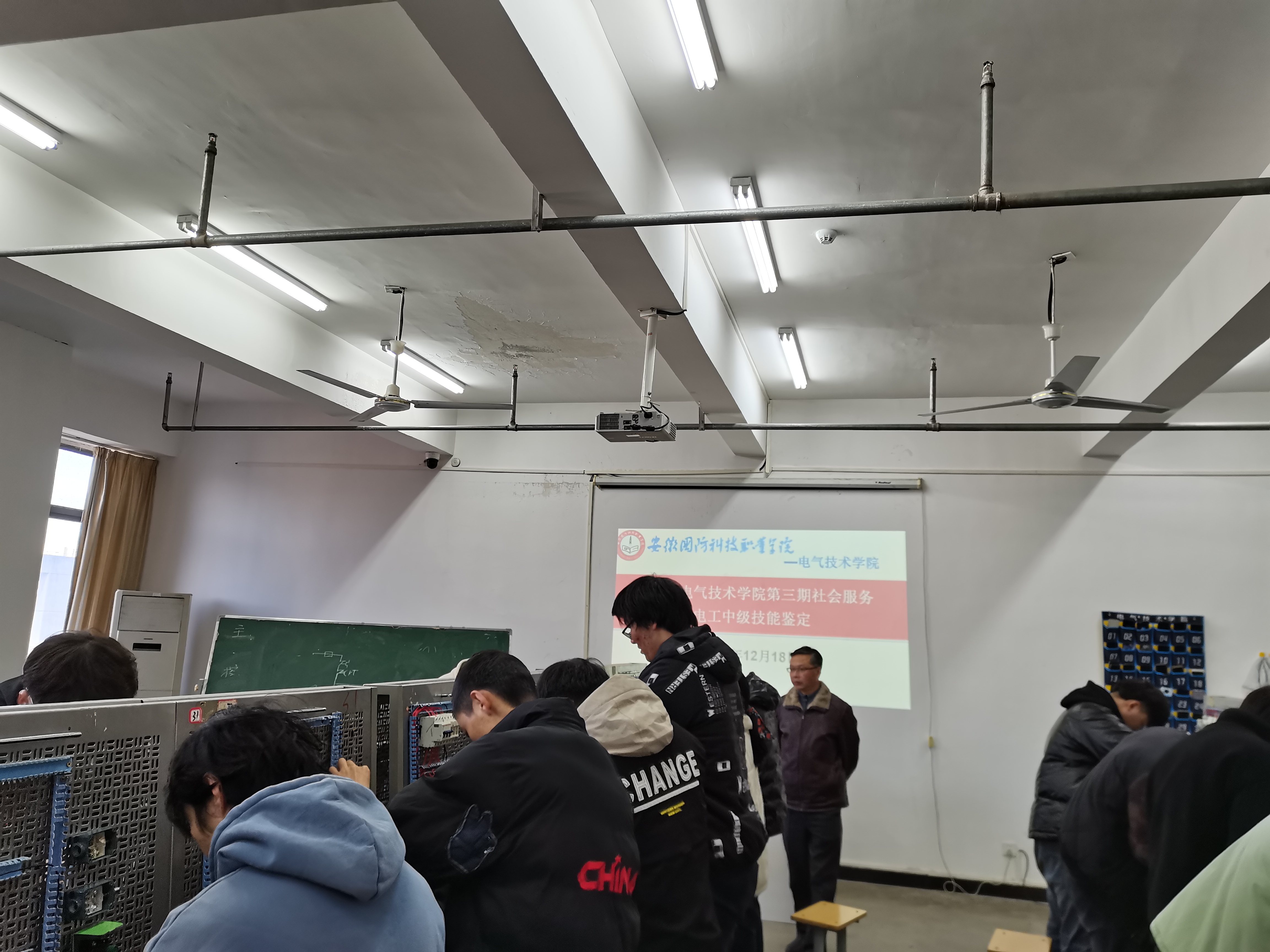 根据省示范实验实训中心2021年度工作计划,电气技术学院实训中心依据国家电工考证标准对参加考证的学生进行相关培训及职业资格鉴定工作。为进一步发挥电工电子与自动化省级示范实验实训中心社会服务功能,满足学校部分学生和社会部分专业技术人员个人能力提升的要求,在技能鉴定中心指导下于2021年12月18日进行了电工中级职业资格鉴定工作,共计117人参与本次电工中级考证。