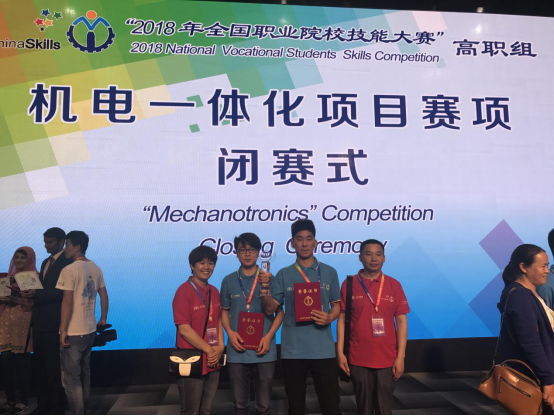 5月7日至8日,2018年全国职业院校技能大赛(高职组)“机电一体化项目”赛项比赛在天津落下帷幕。经过来自全国68支代表队的激烈角逐,由beat365电气技术学院黄启超和王乐豪两位同学组成的代表队,一举夺得一等奖!沉甸甸的奖杯,凝聚着参赛同学多日来勤奋学习和刻苦训练的艰辛和汗水,也凝聚着beat365任启宏、王丽两位指导老师过硬水平和精心指导的心血和智慧,更凝聚着省教育厅的关心关爱!这不仅是beat365人才培养质量的充分体现,也为安徽省高职教育荣耀全国赛场,再添耀眼光芒!这是安徽高等职教和我们安徽国防学院共同的骄傲和自豪!