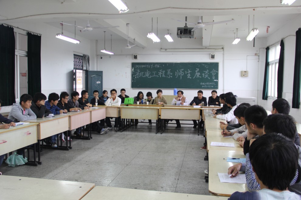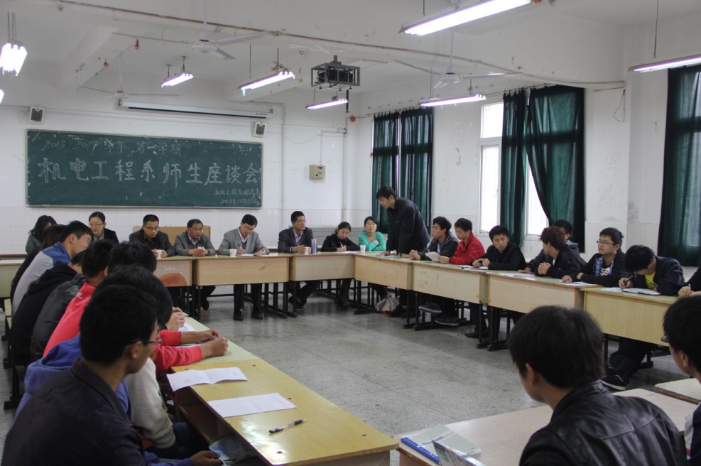 为及时了解本学期开学以来我系教风、学风的开展情况,搭起师生互联、互动的桥梁,实现教学相长的目标。根据机电工程系教风、学风活动年工作计划和系教学督导组的学期工作安排,于10月30日下午召开了机电工程系2013-2014学年第一学期教风学风师生座谈会,所属每个班级的三名学生代表和所有专业课授课老师、部分基础课授课老师参加了会议。