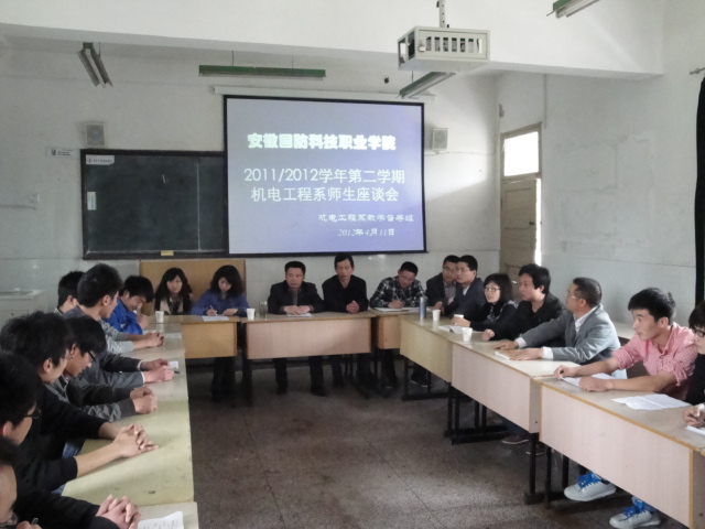 为提高教学质量,增进师生交流与了解,解决学生的问题和疑惑,机电工程系于4月11日下午在1#102、103、104教室召开2011/2012学年第二学期师生座谈会,会议按专业分成三个专场,分别由系部陈小林主任,孙良平书记、叶启衡副书记、李翔副主任主持,系属全体教师出席此次会议,机电系各班学生代表参加了会议。
