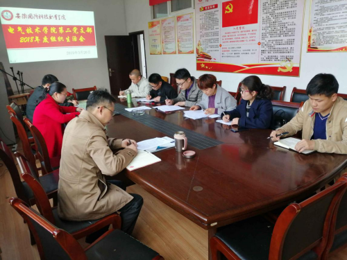 根据校党委《关于召开2018年度基层党组织组织生活会和开展民主评议党员的通知》文件的部署要求,2019年3月20日下午4:30,电气技术学院党总支第一、二支部分别在综合楼508、行政楼106召开组织生活会。会议分别由第一支部书记江治国、第二支部书记汤晓莉主持,各支部党员参加。