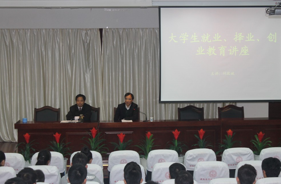 11月2日上午,六安市政协委员、金安区政协常委、六安创业之星、六安永成电子机械有限公司总经理付正兵,来到beat365在线唯一官网,给学生举办了一场就业、择业、创业教育讲座,学院大学生创业协会全体成员及机电工程系电气自动化专业2014届全体毕业生200多人聆听了报告会,报告会由机电工程系党总支书记陈兆同主持。