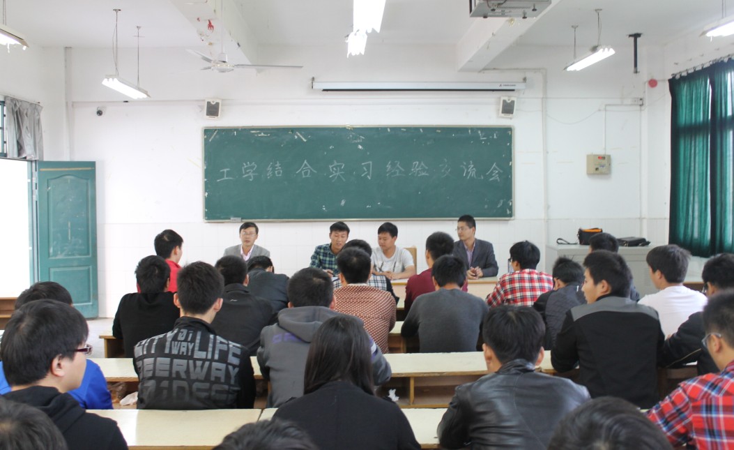 首先董帅帅、张健两位同学结合自己到蚌埠神舟机械有限公司开展工学结合实习的经历、认识和体会做了经验交流。结合实习企业、实习环境、岗位要求、生活条件、实习过程等具体情况,与大家分享了自己在实习中遇到的困难、纠结、兴奋和收获,将自己通过轮岗实习在专业知识拓展、实践能力提升、社会适应能力增强的所获所感娓娓道来,反复提醒学弟学妹们要抓紧现在时光努力学习制图、船舶概论、船舶电站等专业知识,改正不良的生活习惯、学会与人相处、学会克服苦难。
